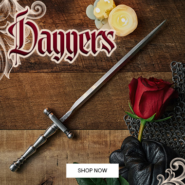 We are your one-stop-shop for collectors of Medieval Weapons, Renaissance Clothing, and many other Medieval & Renaissance items. We have been serving the online community since 2003. We carry high-quality battle-ready and decorative weapons, armor, shields, and other weaponry of the past and present. Our site is updated daily to bring you the most current information on things like pre-orders and new products. We also upload products weekly so there is always something new and exciting. Use our Advanced Search option to see what we have added recently.