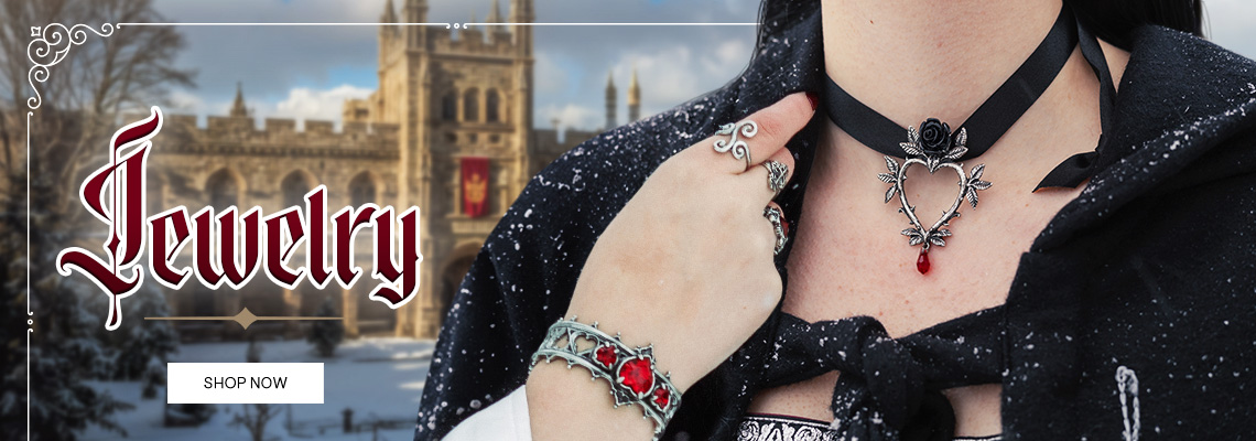 Medieval Collectibles offers an impressive selection of gorgeous jewelry pieces in styles to suit any taste. Our medieval jewelry works great for re-enactments with historical designs like Templar sigils, signet rings, fleurs de lis, and cloak pins. Coming forward in time, our Victorian jewelry embraces refined looks with pieces like cameo necklaces, pocket watches, lace chokers, and pearl necklaces. Showing a Neo-Victorian twist, much of our steampunk jewelry displays gears, octopuses, skeleton keys, and other mechanical motifs. Our Celtic jewelry features popular designs like Claddagh rings and intricate knotwork, while our Greek and Roman jewelry offers pieces like torc bracelets, beaded necklaces, and coin pendants. Browse among our gothic jewelry, pirate jewelry, Viking jewelry, and Wiccan jewelry to find even more eye-catching designs with skulls, dragons, pentagrams, Mjolnir, fairies, the Jolly Roger, and more. Among our various styles, you will be able to purchase necklaces, rings, earrings, pendants, bracelets, hair accessories, anklets, brooches, charms, belt buckles, cufflinks, and watches from our ever-growing inventory. View all Jewelry