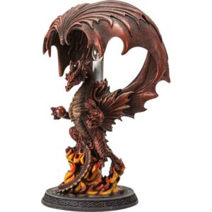 Not only are dragon lamps and lighting functional additions to home decor, they are also great for showing off your love for all things dragon. Our dragon lamps come in a variety of shapes made to fill different roles, so our selection ranges from hanging lamps and wall lamps to table lamps and beyond. Some of our dragon lamps are grand things that feature impressive dragon styling, full-figured dragons that stand tall and proud holding spheres of light that illuminate the room. Some of these are dragon wall lamps that depict dragon heads holding light sources, while others are perched on wall displays that show off great medieval style. Others are hanging lamps meant to be suspended from the ceiling. Still others are great table, desk, and mantel displays. Some exhibit large amounts of light while others, like our smaller LED lamps and tap lights, are more suited as accent lights or as night lights. Like dragons themselves, the dragon lamps offered here come in all different shapes and sizes. So if you are looking for your next dragon collectible, why not take a moment to browse, as you might find just what you are looking for and more in one of our dragon lighting options.