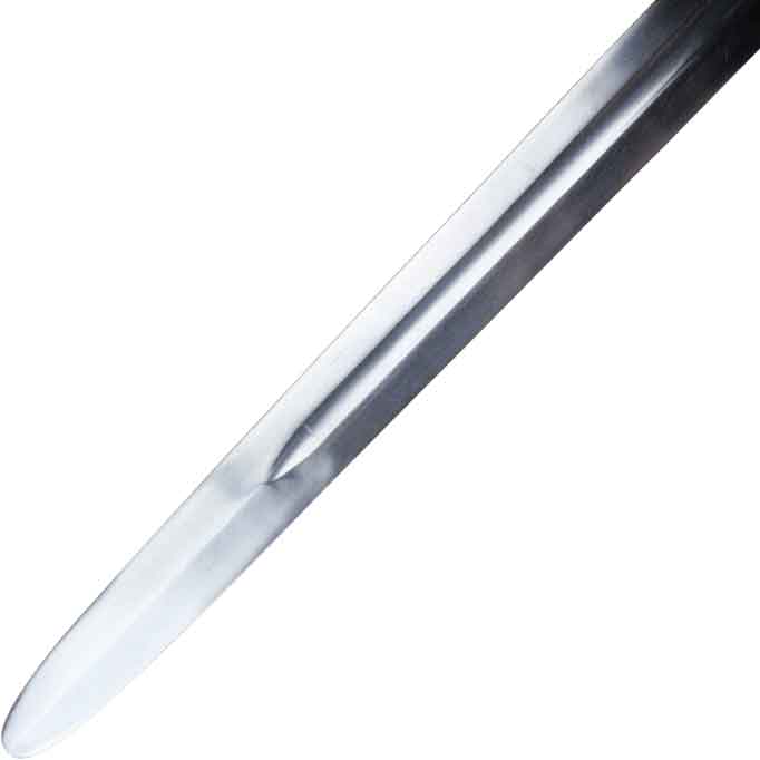 There are two versions of this sword: the Regular version and the Light Combat version. Both versions have an unsharpened, double-edged blade with a fuller. The fuller removes excess weight from the blade while strengthening the edges, making it sturdier and more durable for blade-on-blade contact. The Regular version is designed for reenactment while the Light Combat version is designed for stage combat. The Regular version of the blade ends in an angled point while the Light Combat version is rounded.