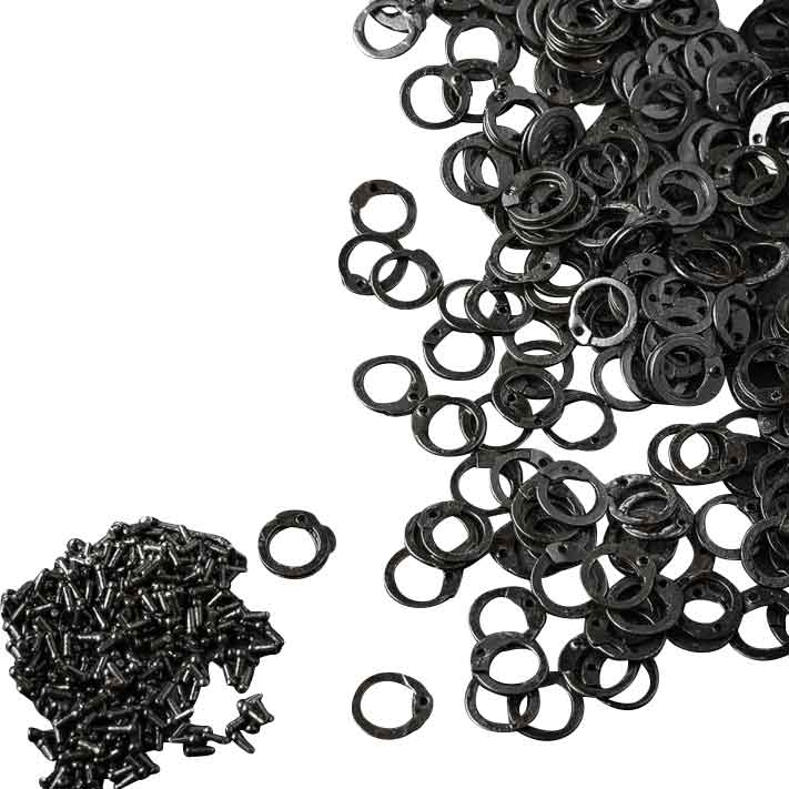 Whether you are engaging in an intense LARP battle or showcasing your latest creation at a cosplay event, these chainmail rings provide the ideal foundation. These 9 mm flat rings, combined with durable round rivets, ensure your armor pieces are not only striking but also robust enough to withstand the rigors of any event. The blackened finish adds not only an aesthetic edge but serves as a protective layer, ensuring your handiwork stands the test of time.