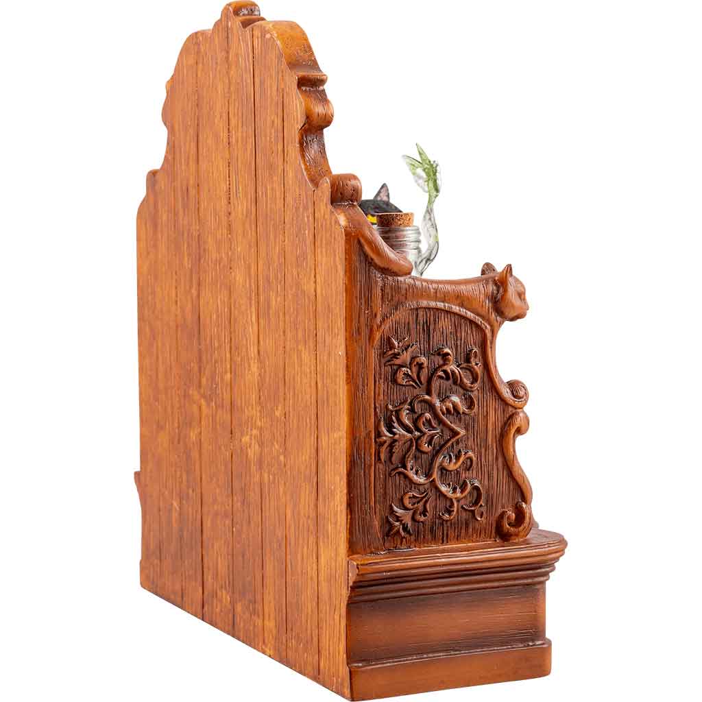 Absinthe had the name of the green fairy in historical literature. The Absinthe by Lisa Parker Statue pays tribute to that ancient name as a statue. This intricately detailed statue is polystone with a glass mirror. The hand-painted statue depicts artwork by the talented Lisa Parker. It shows a black cat sitting on a dresser. The cat is looking at a green fairy rising out of a small glass of absinthe. There is a book to the right of the cat. On the other side of the absinthe glass is a bottle of the verdant spirit. Behind the cat, the dress has an oval mirror. Below them, the little dresser has a drawer with an oval pull. The drawer does pull out. Add this fantasy statue to your home or office decor. It makes a lovely collectible.