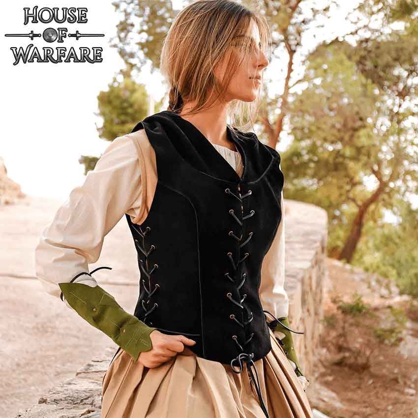 With its versatile, hooded design, the Adventurer Suede Bodice suits a range of characters, from bold warriors to cunning rogues. It is the perfect choice for any medieval or fantasy setting, adding an authentic touch to your costume.
