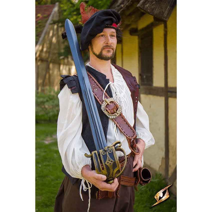 Crafted from latex-coated EVA foam, this medieval broadsword offers the perfect balance of safety and realism. You can engage in epic battles while maintaining comfort and control. It honors the swords often associated with the Scottish highlanders. These swords were born out of the Renaissance and came to prominence in the 16th century.