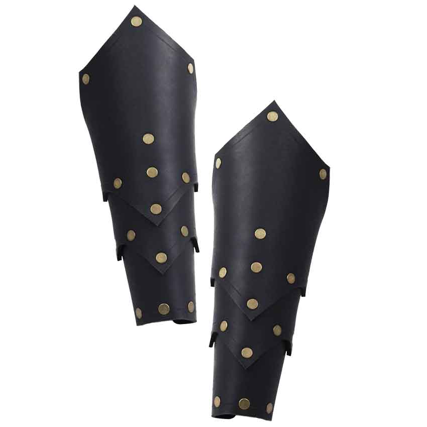 An assassin does not need heavy metal plates to protect themselves from damage. Something lighter, like these Behan Leather Bracers, are more suited, offering just the right combination of effective protection and necessary lightness and mobility. Of course, an assassin is not on the only one who can take advantage of these bracers. All creeds, all classes, and all warriors can utilize these bracers, to give themselves effective protection without weighing themselves down overly much. Crafted entirely from rigid 9-10 oz. leather, these bracers have a scaled design that wraps three progressively sized scales around the arm, providing successive levels of protection. The design is also an appealing one to see, and the angular edges of the bracers scaled design are accented by the metal rivets that hold it all together. The bracer is offered in a single size, which is worn via lacing along the back. This laced-up design also makes the bracers a bit more adjustable in terms of their sizing. Whatever your role on the battlefield, there is no denying that sometimes, you simply have to get your hands dirty. And if you are wearing these Behan Leather Bracers, you do not have to worry about endangering your hands when you do find it necessary to take personal action.