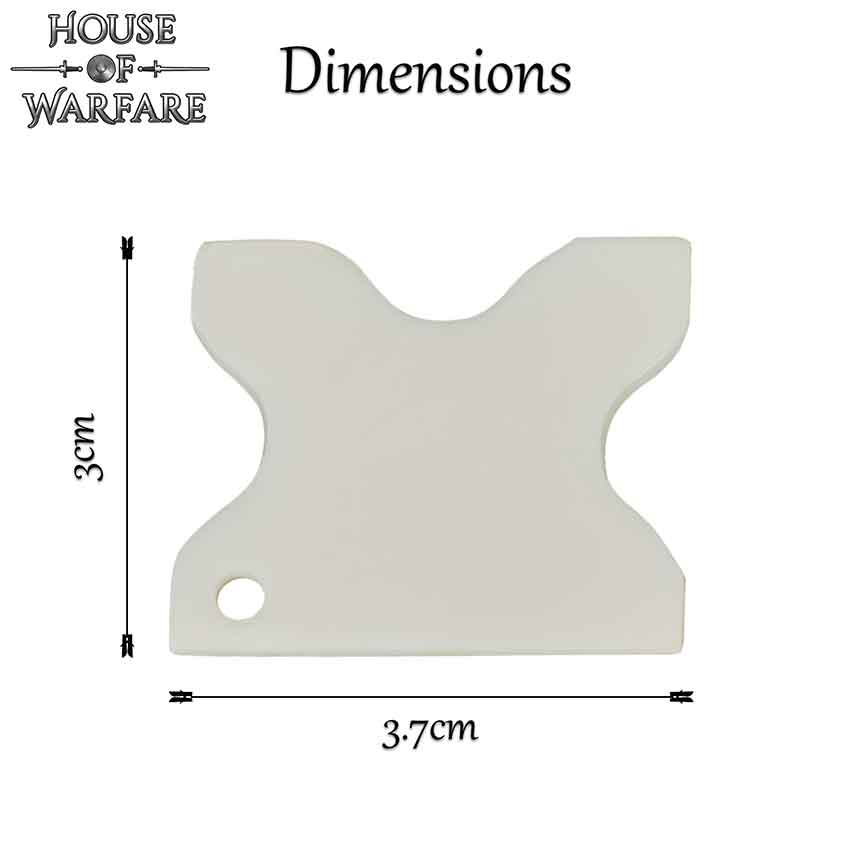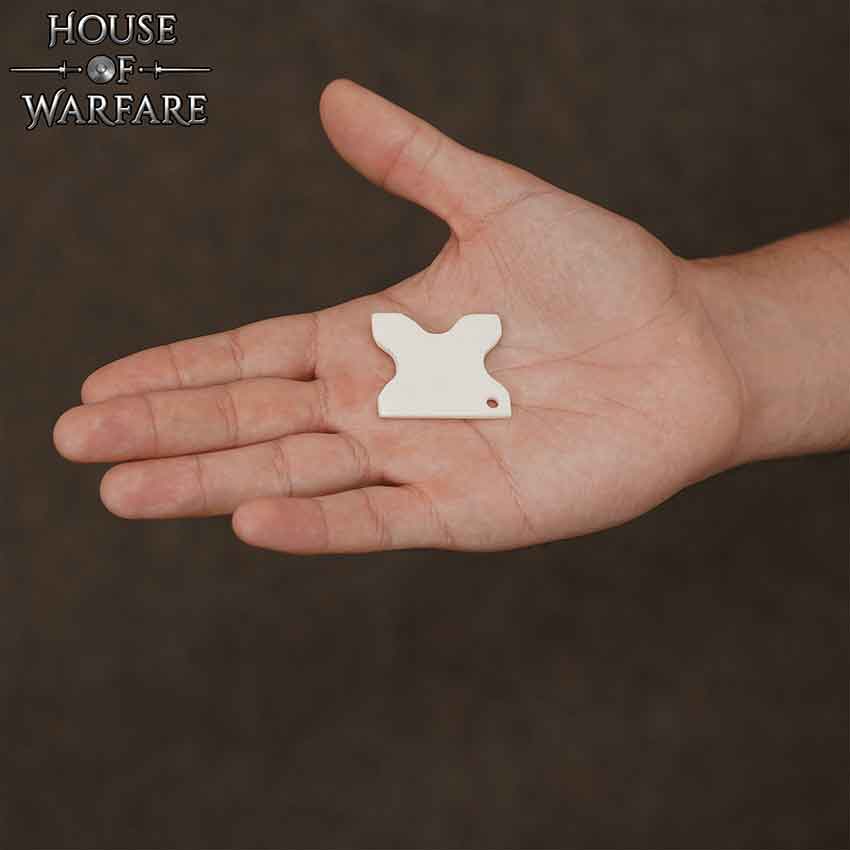 The Birka Historical Thread Winder resembles the historical version of the modern thread winder cards that embroidery thread is commonly stored on. Made of horn, this thread winder has one straight edge with three curved sides. Those sides form right corners but have concave cutouts in the middle of each side. In one of the corners of the straight edge, there is a hole. Historically, you would tie a thread through this hole to secure the thread while winding it up. The Birka Historical Thread Winder is fully functional. It makes a great collectible or display piece. It is also wonderful for use at historical reenactments.