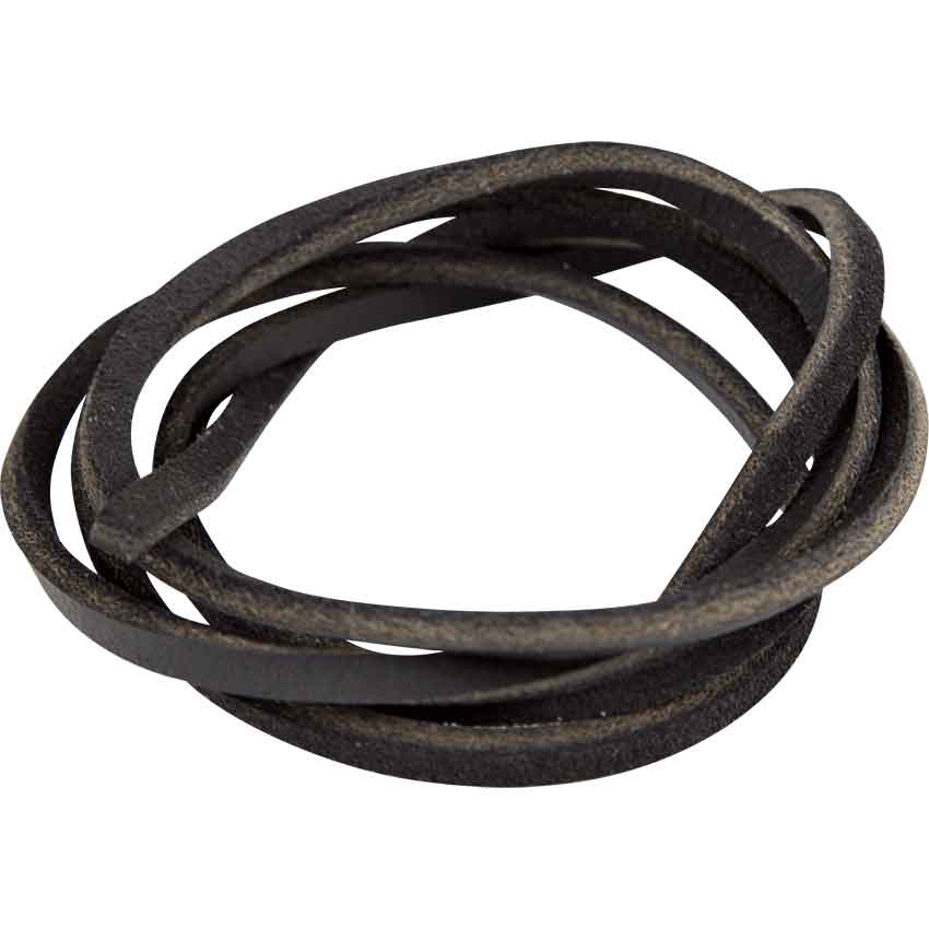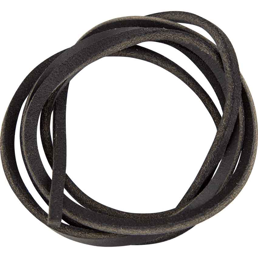 Good leather cord is an essential for any setting. This Black Leather Lace has a versatile length between 35 and 40 inches, great for replacing worn lacing, DIY, or simply adding a rugged personal touch to clothing and armour pieces. This medium length leather cord is black, which matches just about anything. Use it to toughen up medieval, fantasy, and Renaissance looks, secure armour, clothing, and accessories, or for do-it-yourself and crafting endeavors.