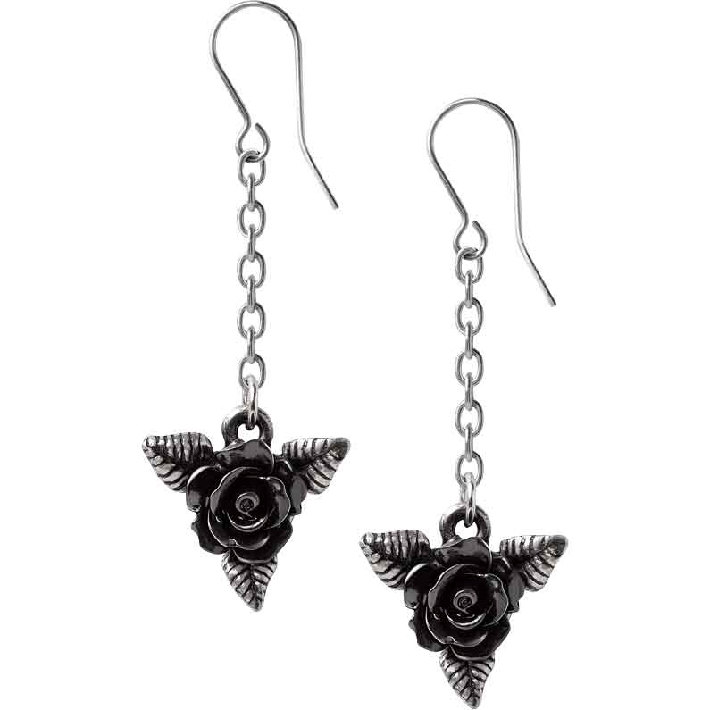 Bring romantic gothic style to your alternative style with these rose dangle earrings. These gothic jewelry pieces make a beautiful addition to elegant gothic outfits. They are also versatile enough to make a statement everyday. Pair them with the Baroque Rose Necklace (AG-P955) for even more romantic gothic style.