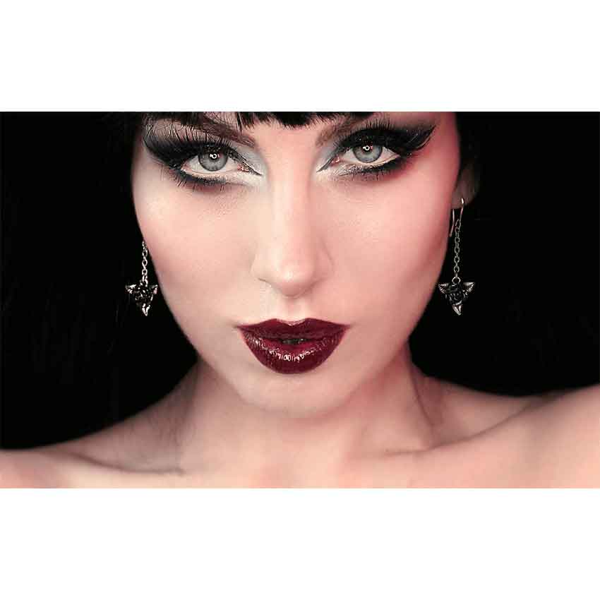 Bring the beauty of a dark garden to your graveyard haunts and vampire balls. With their delicate petal details and black resin finish, the Black Rose Dropper Earrings make beautiful additions to any gothic style. They feature an elegant dangling style.