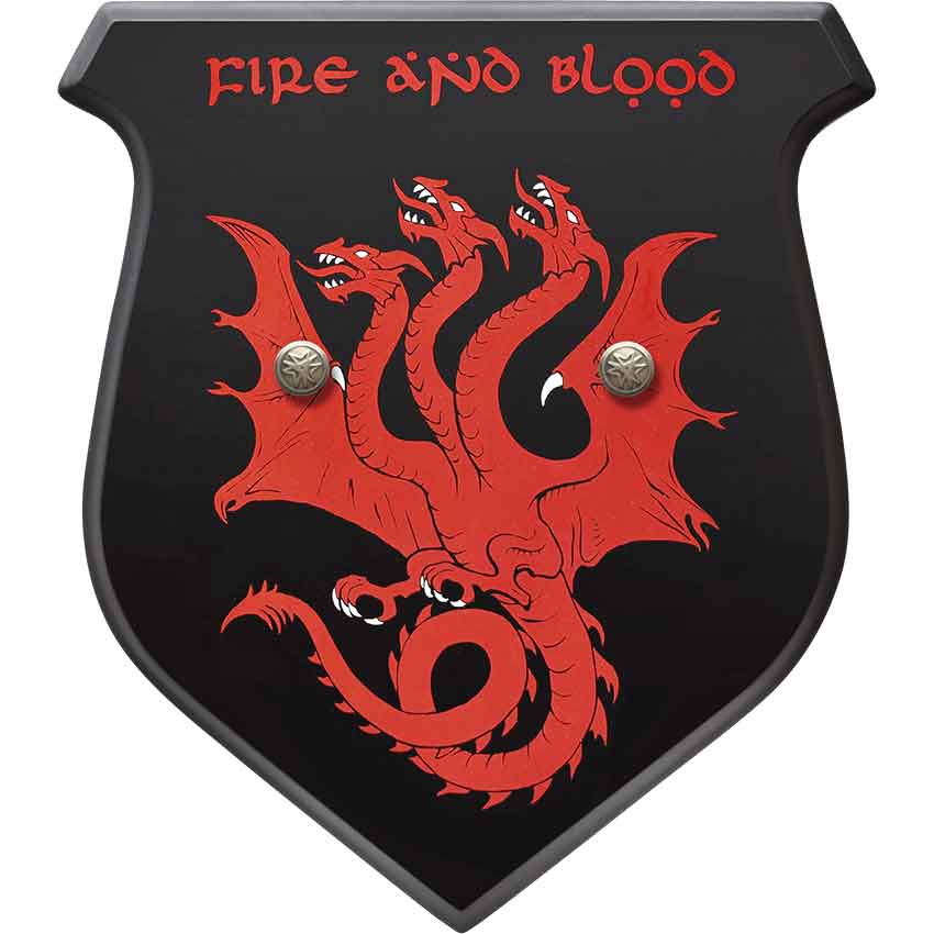 Finally, this sword comes with a certificate of authenticity and a display plaque. The black, shield-shaped plaque features the red three-headed dragon of the Targaryen dynasty. Also, the Targaryen motto of Fire and Blood adorns the top of the plaque. This fantasy sword makes the perfect addition to any Game of Thrones collection or weaponry display.