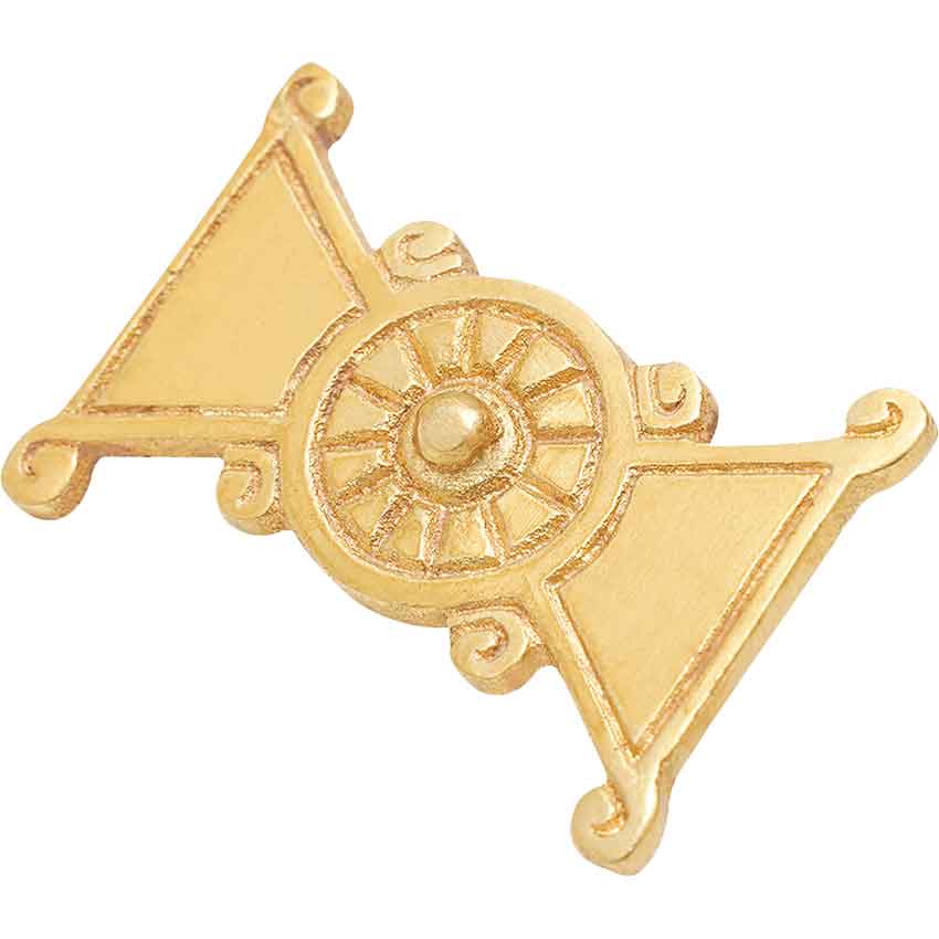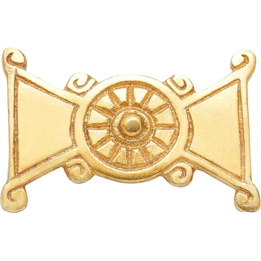 Looking to change up your medieval look and accessories? The Brass Medieval Belt Decoration makes a great option for DIY projects. Made from brass, this belt decoration features a bowtie shape. In the center, there is a circular medallion with carved lines forming sections that surround the central circle.