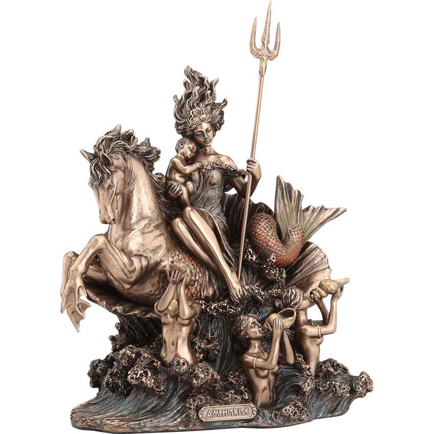 Embrace the magic of the sea with this Bronze Amphitrite Sea Goddess Statue. Grace your home with the wife of Poseidon and her entourage of sea-borne servants.