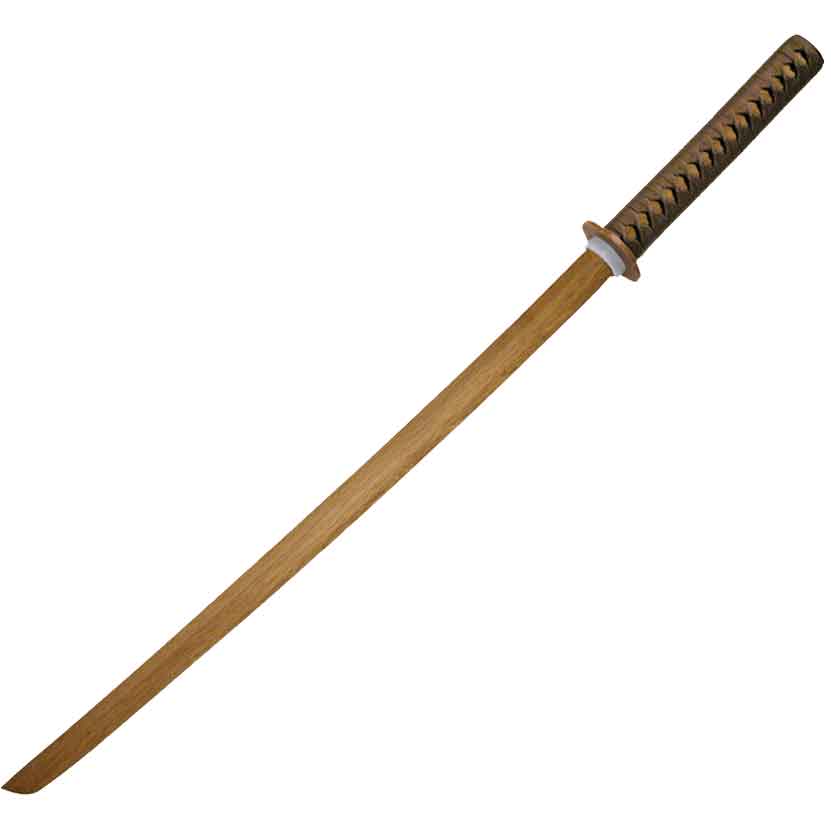 Bokken have been used for years in martial arts. They are highly efficient for training, given the ease of which a bokken can be replaced. The Brown Bokken Sword is simple and sturdy, the exact sort of instrument that is ideal for light practice. Bokken is a Japanese term applying to any wooden sword of Japanese origin. Bokken actually means wood sword (boku means wood, ken means sword). This bokken is relatively nothing special. Simple in construction but reliable for that same reason, this sturdy piece is designed for use, designed to be put through the paces in practice. The grip is wrapped in tan-brown cloth, and the guard is constructed properly to mimic an actual tsuba from a real katana. The blade is left undecorated, because this is a light practice item. Simple, strong, and efficient, the Brown Bokken Sword gets the job done when a wooden practice sword is needed for light training.