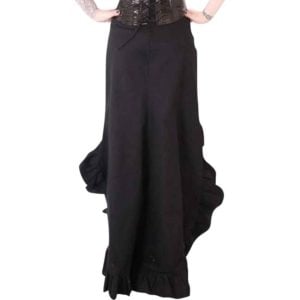 The Canvas Emporium Mia Frill Skirt is perfect for finishing off a variety of steampunk characters with its stylish design. Made from a polyester blend, this black gothic skirt comes in three sizes. It has a high-low design with a ruffle at the hem. The hem ends near the ankles, while the front ends above the knees. The steampunk skirt secures with a long zipper. This skirt is ideal for wearing with gothic looks or steampunk outfits.