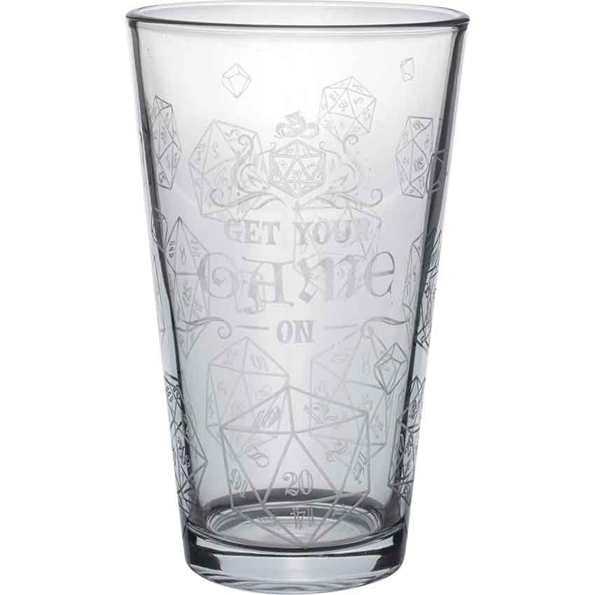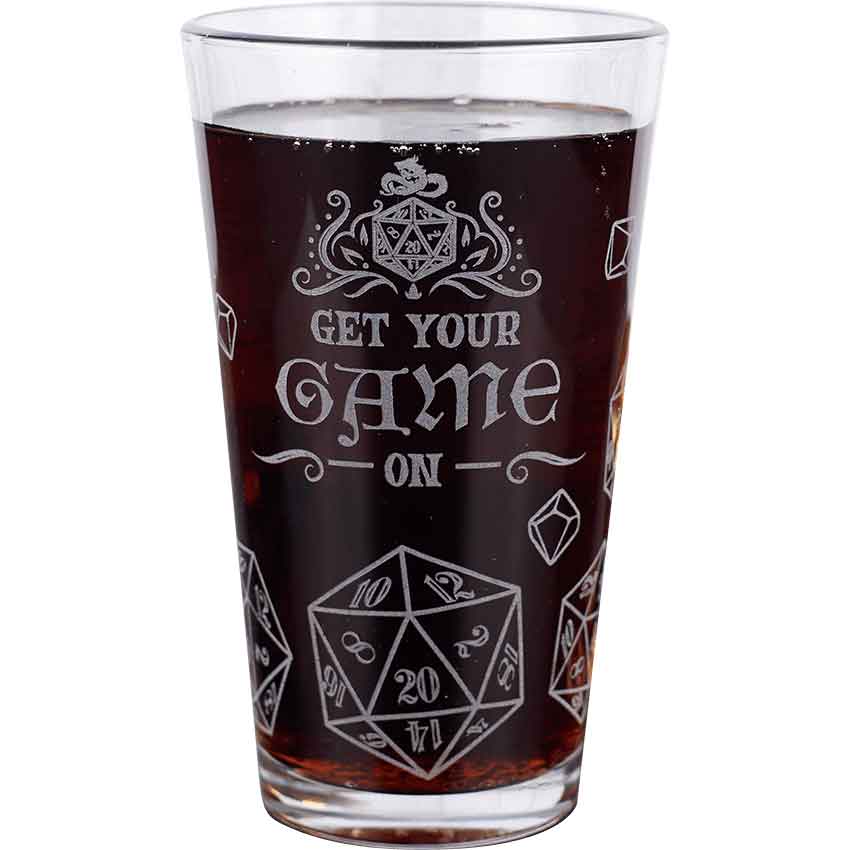 Step back into the realms of Dungeons and Dragons with the D20 Get Your Game On Pint Glass. This charming cup is the perfect addition to your exciting tabletop role playing games.