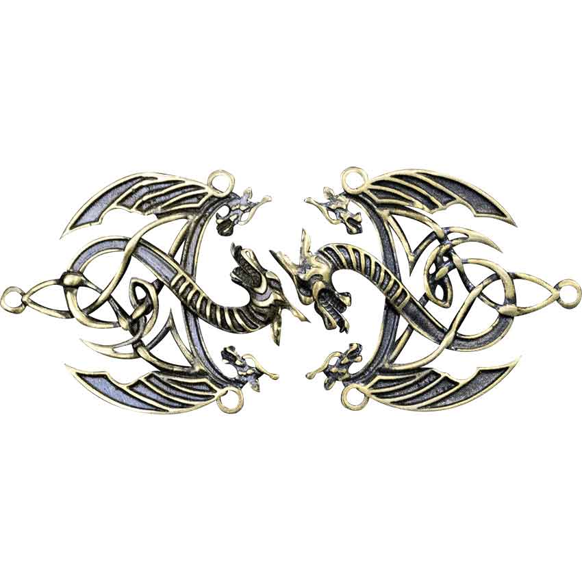 This medieval fantasy cloak holder not only secures the cloak of the Black Queen from the iconic dragon-riding family, but also captures the imagination with its intricate design. Crafted from solid brass, it embodies both elegance and durability. This brass construction gives the dragons a brilliant gold-finish, contrasted with darker shades in the wings and the neck.