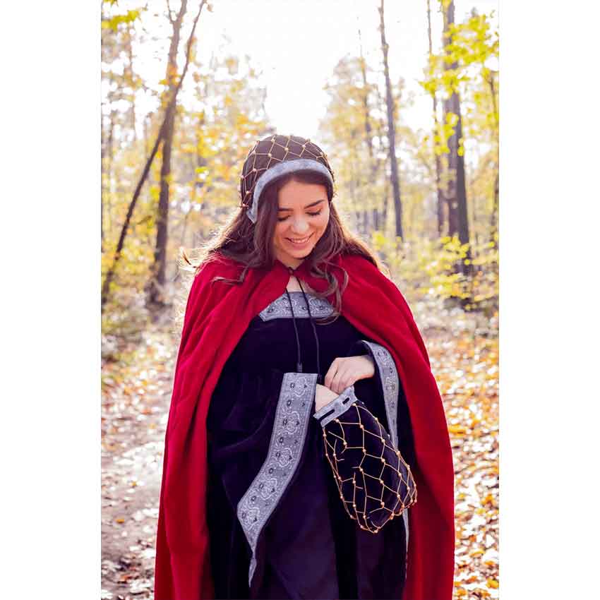 At the bottom, the Renaissance hood has a gathered hem to help secure it in place on the wearers head. Wear this medieval bonnet to complement your favorite medieval dress or to complete your fantasy outfit.