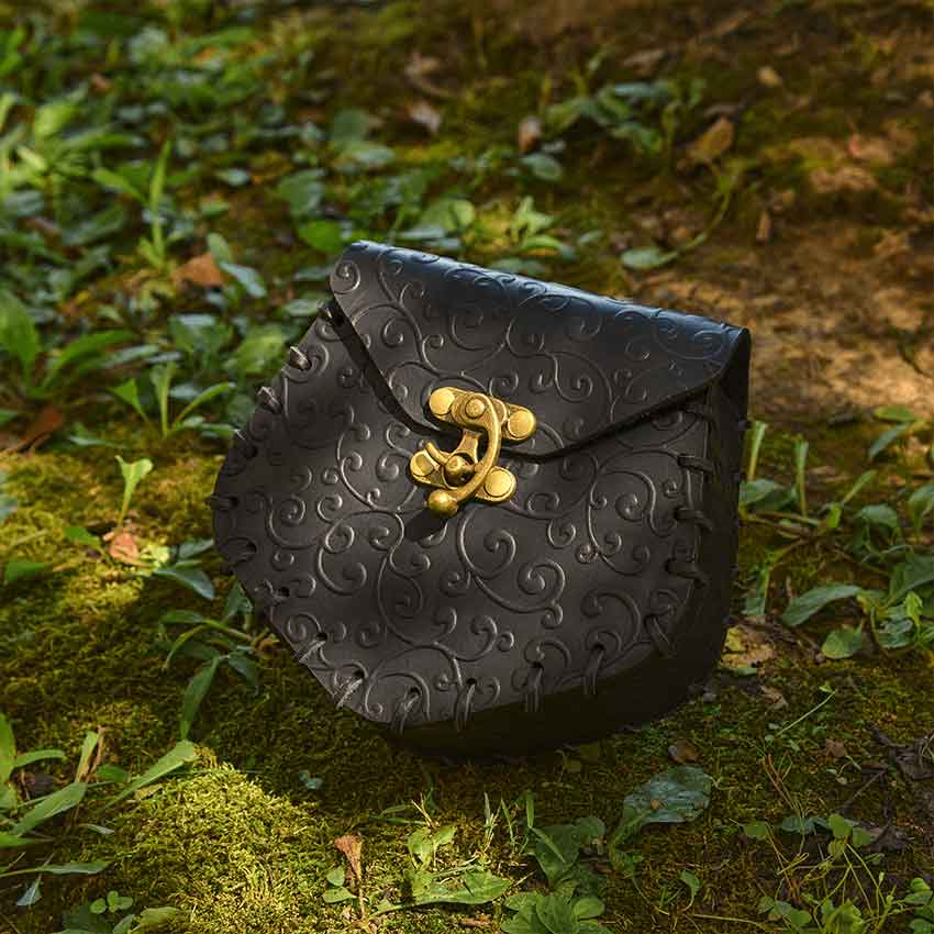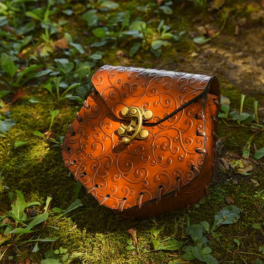 When you want a beautiful belt bag that will go with your LARP or Ren faire costume, check out the Elven Swirl Leather Pouch. Made from 7-8-ounce vegetable-tanned leather, this fantasy belt pouch comes in two colors.