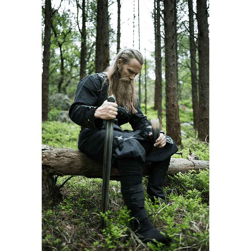 From harrowing journeys through a troll-run forest to your local faires and LARP events, the Black Erik Leather Trim Viking Tunic will make you look like the stuff of legends. Made of comfortable cotton, this long sleeve tunic features eye-catching leather trim that creates a look perfect for Norse warriors.
