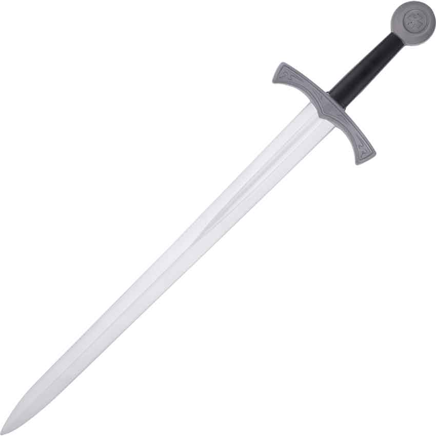 An excellent choice for younger kings and those wishing for a blade better suited in confined spaces, this Excalibur Foam Short Sword displays a disc pommel and a bold fuller that extends down half the length of the latex blade. Crafted from dense latex foam with a unique fiberglass fusion core, this medieval foam sword is lightweight and extremely flexible. The latex construction with painted details provides a realistic look for any cosplay or theatrical production. The black hilt, decorated with crosses and other designs, provides a regal contrast with the metallic silver blade. An excellent piece to wear to a Renaissance fair or Halloween party, this Excalibur Foam Short Sword is suitable for light sparring.