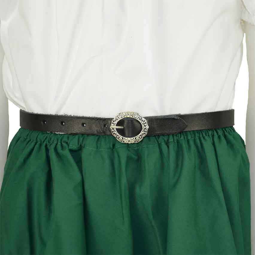 This leather belt would be a cute addition to any girls medieval or renaissance outfit. With a very elegant, floral filigree style buckle, it is perfect for any little lady. The belt is made of 5-6 ounce leather and comes in many sizes, so no matter what your little ones age is, we will have a belt to fit her. The belt is 0.75 inches wide. It comes in black and dark brown. You can choose between antiqued brass and antiqued silver hardware.
