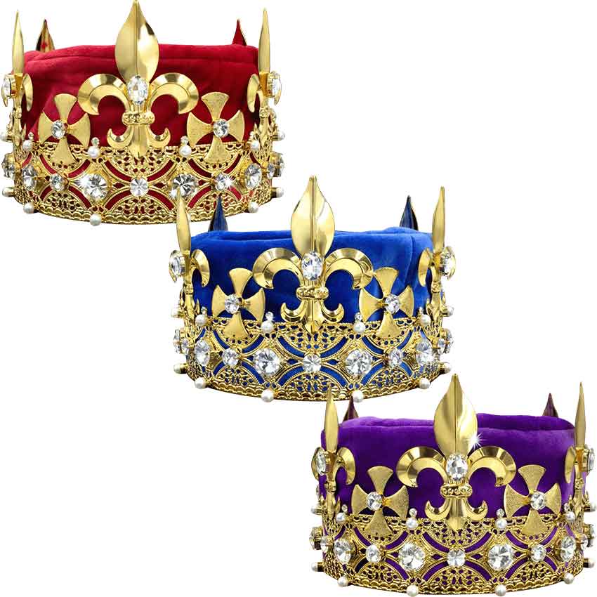 Inside the metal crown frame is a polyester velvet fabric. You can choose between red, blue, and purple velvet, thus allowing for whatever look suits your regal character. With an interior Velcro adjuster, the soft, roomy crown can be puffed up to different heights.