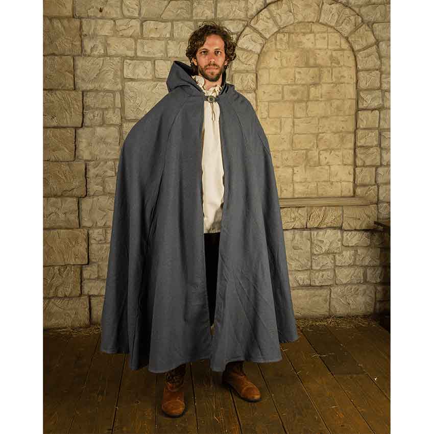 A staple in any medieval wardrobe, the Gora Canvas Cloak is an excellent option when it comes to choosing historic outerwear. Made of thick, 100 percent cotton canvas, this sturdy cloak features a roomy hood with an oversized tail. With an open front, this LARP appropriate cloak is easy to wear and fastens at the neck with a single, large button. The long tail adds character and charm to this classic piece, and its timeless design makes the Gora Canvas Cloak easy to pair with almost any outfit. It is also available in a variety of colors to suit many styles and tastes.