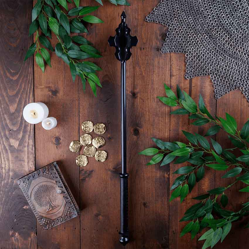 An eye-catching historical weapon for the modern man at arms, the Gothic Flanged Mace provides a contemporary interpretation of the classic gothic bludgeon. The high carbon steel mace is the perfect weapon against armour. The gothic mace features a thick-walled, hollow steel handle ending in a heavy pommel that counterbalances the helmet-crushing head. This Germanic mace displays six steel flanges that are profiled and tapered to reduce weight and add bite upon impact. Able to dent and crush even the strongest plate armour, this flanged mace also shows off a pointed finial on the crown that lets it be used as a thrusting weapon. Wielded with one or two hands, this functional mace is light enough for speed and stout enough to block, parry, and deliver crushing blows.