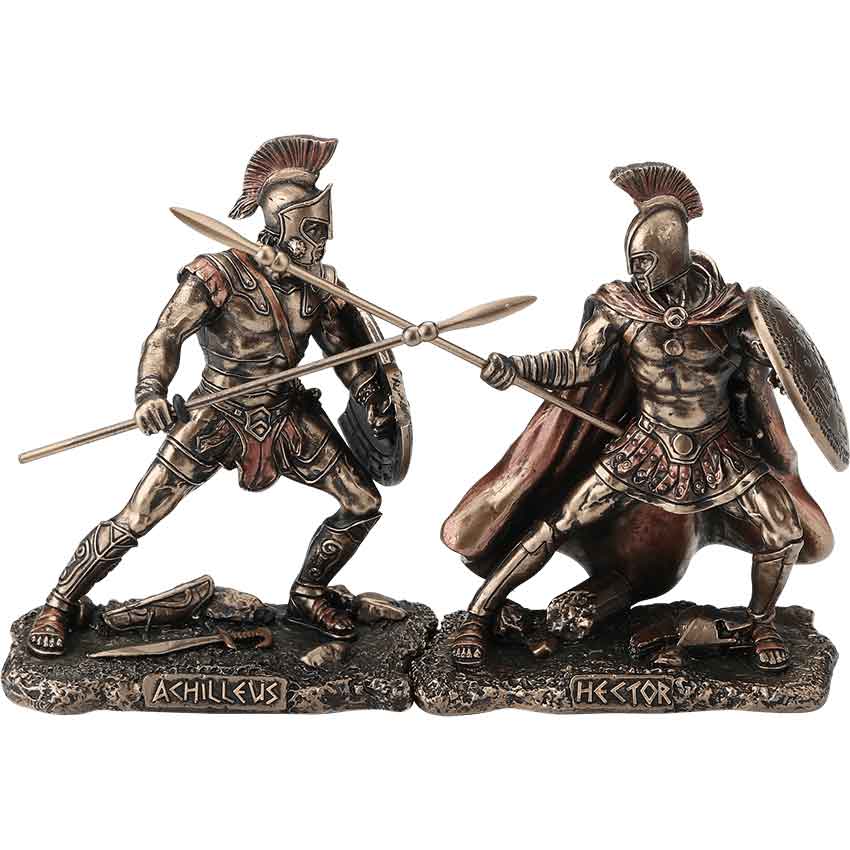 Bring the epic climax of the Trojan War to life with these Hector Fighting Achilles Statues. These statues are a stylish statement of martial prowess, Greek tragedy, and Trojan valor.