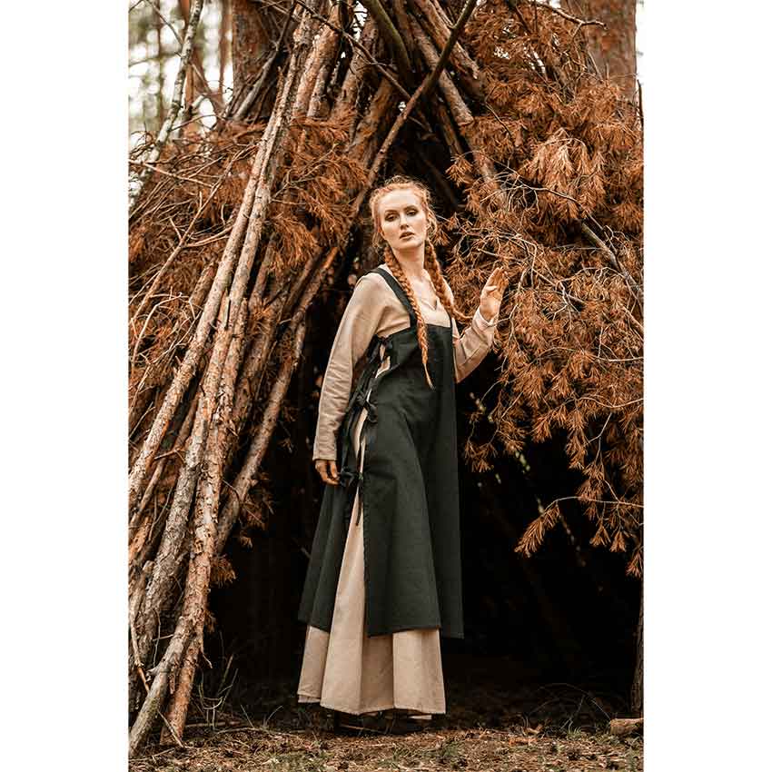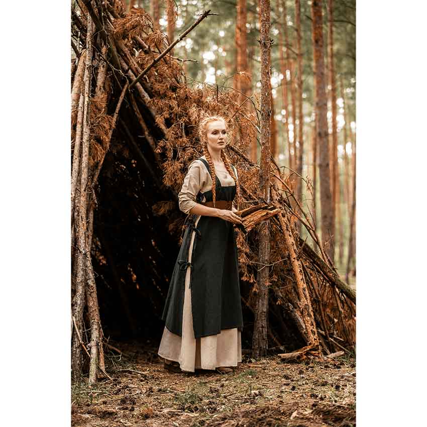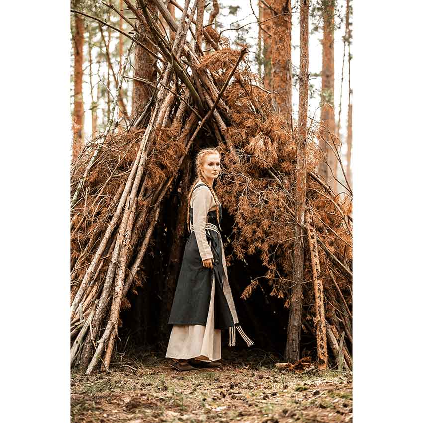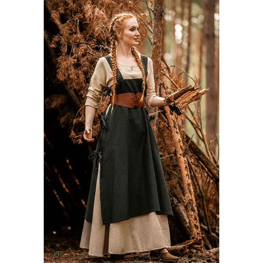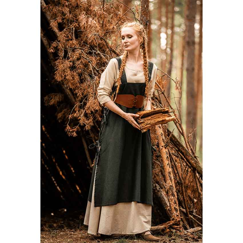 This Nordic dress is ideal for layering. Wear it over the top of another Viking dress or chemise, and you can throw a belt over the top of it like the Brown Alana Viking Corset Belt (LC-1236B). This Viking apron dress is ideal for any Norse maiden to wear. You can wear it to your next reenactment or Ren faire.