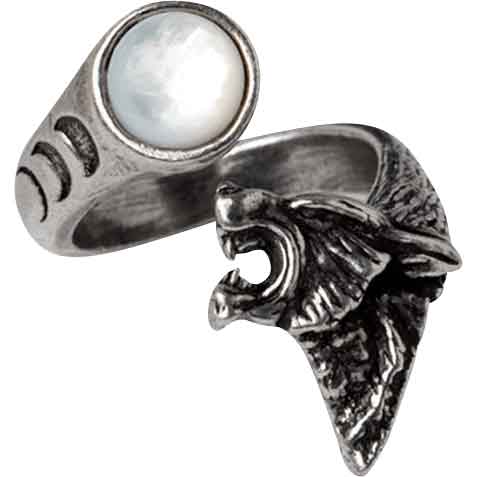 Bring the eerie, overpowering beauty of the moon and the ferocity of the wolf to your everyday alternative style with this gothic ring. It also makes a fantastic accent to the costume of a werewolf, dark warlock, or wizard.
