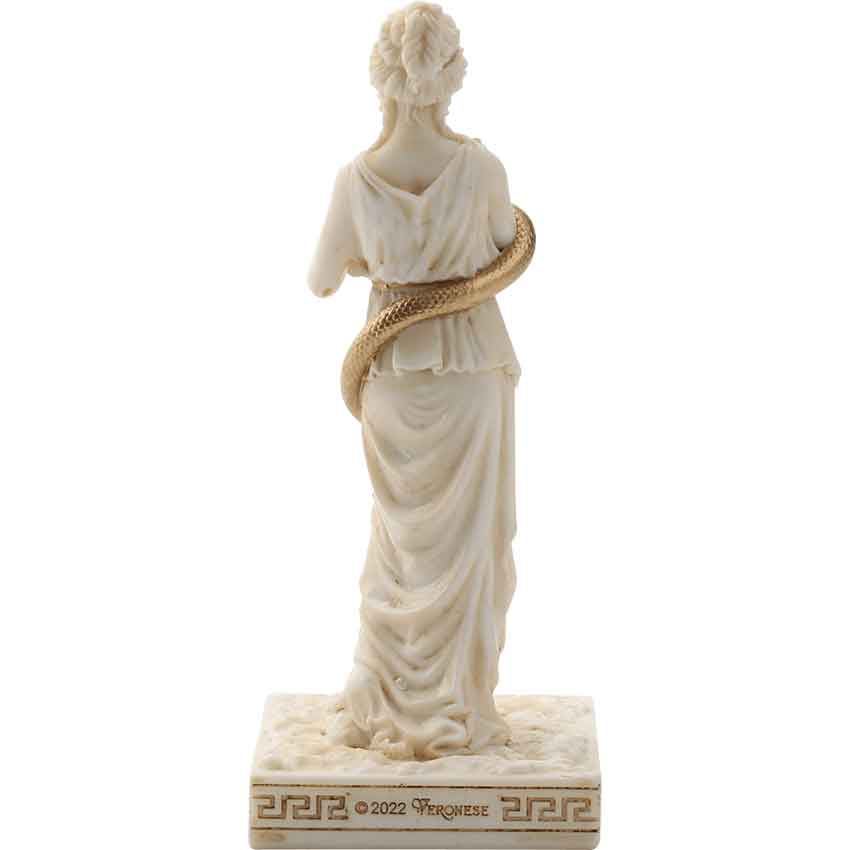 Include the world of ancient Greek in your life and add style to your favorite space with the Hygieia Greek Pantheon Statue. This goddess statue will surely fit in your Greek home decor. You can also give it as a gift. Made from polystone, this hand-painted mini mythology statue depicts the Greek goddess of hygiene standing on a rectangular platform. The platform has a small plaque that reads Hygieia.