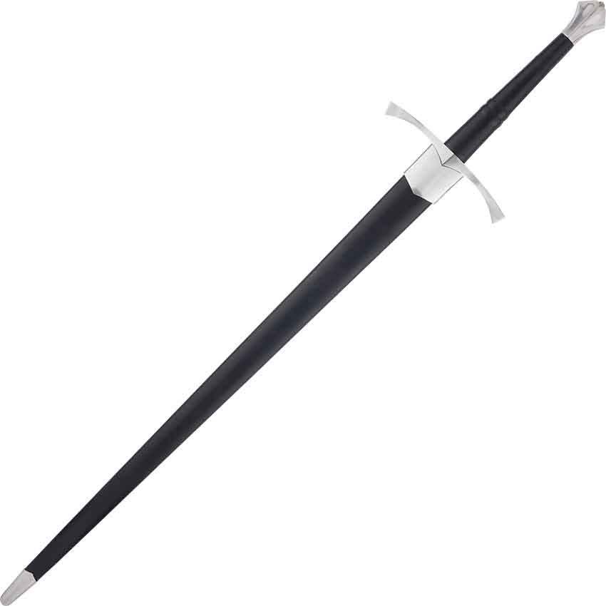 The era of the long sword spanned almost three centuries (approximately 1350 to 1650). This, undoubtedly, was because it really worked! The Italian Long Sword, modeled after historical Italian sword concepts, features a distinctive cruciform hilt and a long, double edged blade equally adept at opposing both light and heavily armoured foes. The extra-long blade offers reach and leverage for powerful stabbing, cutting, and chopping strokes, while its long crossguard and heavy fishtail pommel are useful for hooking, striking, and smashing. The grip is made of wood and wrapped in leather for a firm hold. Fast as a frogs tongue the Italian Sword is deadly in a fight and built like a tank.
