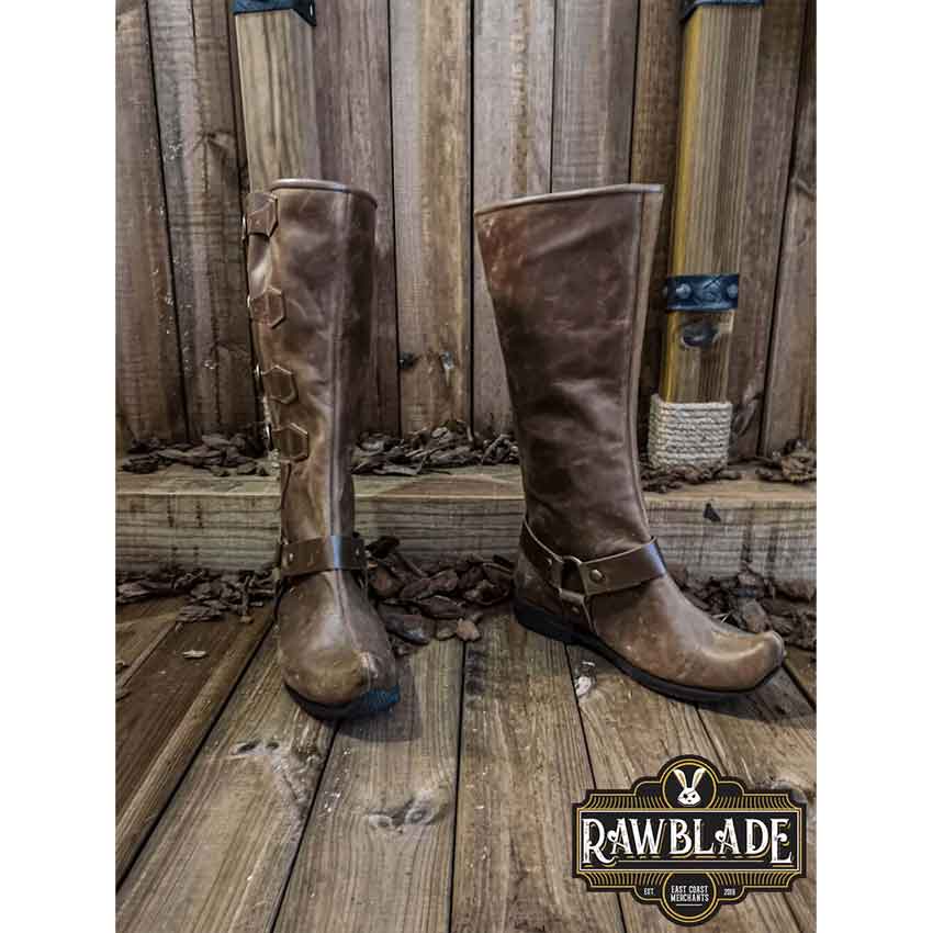 Knights such as yourself will need some footwear for your next reenactment or LARP event. Check out the Brown Jarek Cavalry Boots. Made from calf leather, this handmade pair of brown boots comes in a range of sizes.