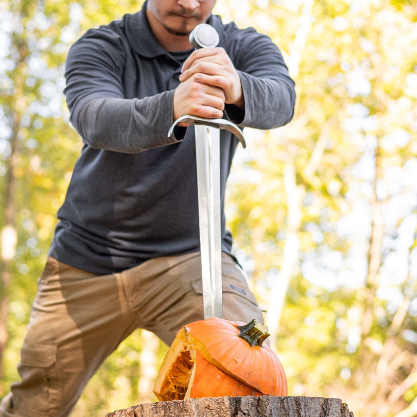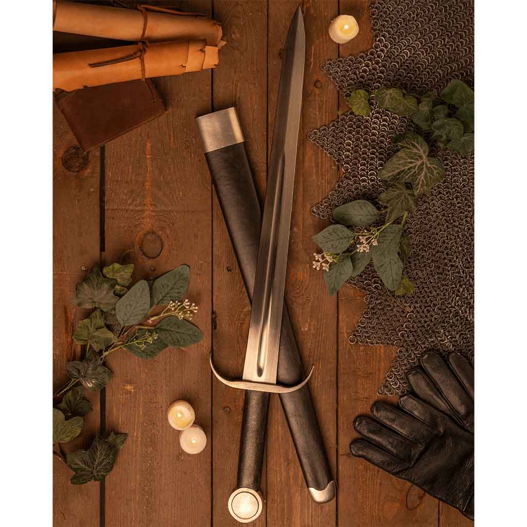 Knight, when you ride into battle, you know that you must be ready to fend off attacks. You fight your foes with the Knights Riding Sword. Made from 5160 high-carbon steel, this functional medieval sword features a double-edged blade with a fuller running down two-thirds of its length. It is based on swords depicted in 14th century effigies.