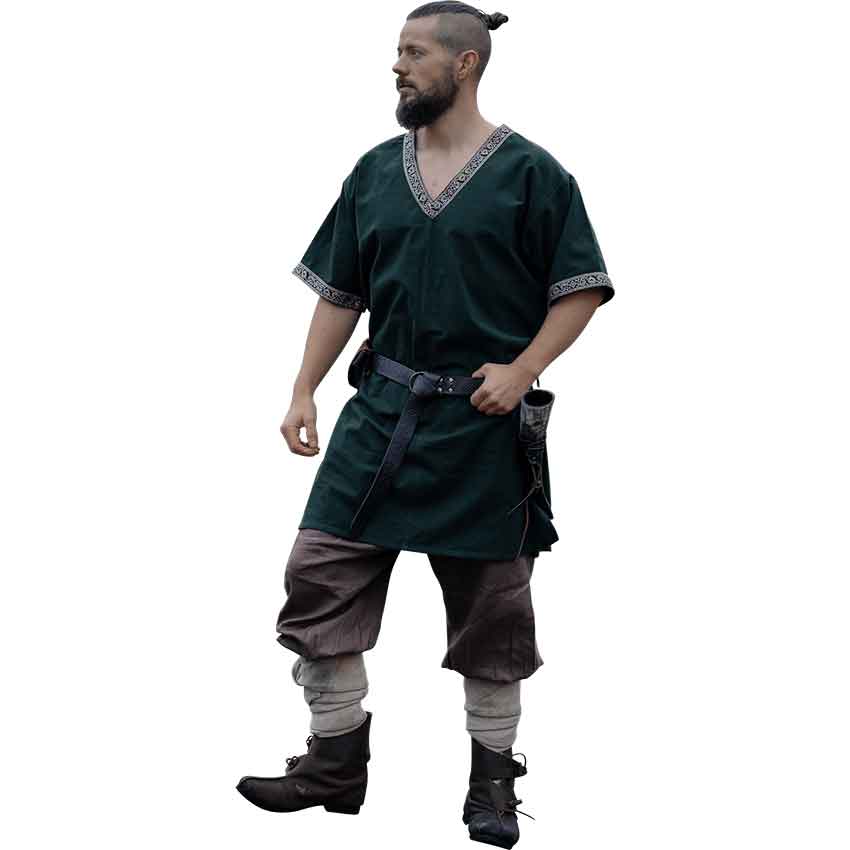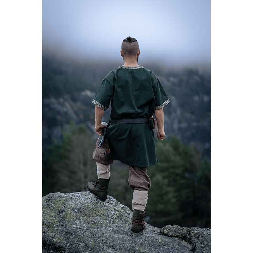 Inspired by the charm of Viking attire, this tunic captures the essence of a bygone age. This captivating tunic is made from cotton with polyester trim. Its natural green hue complements a wide variety of Viking and medieval outfits.