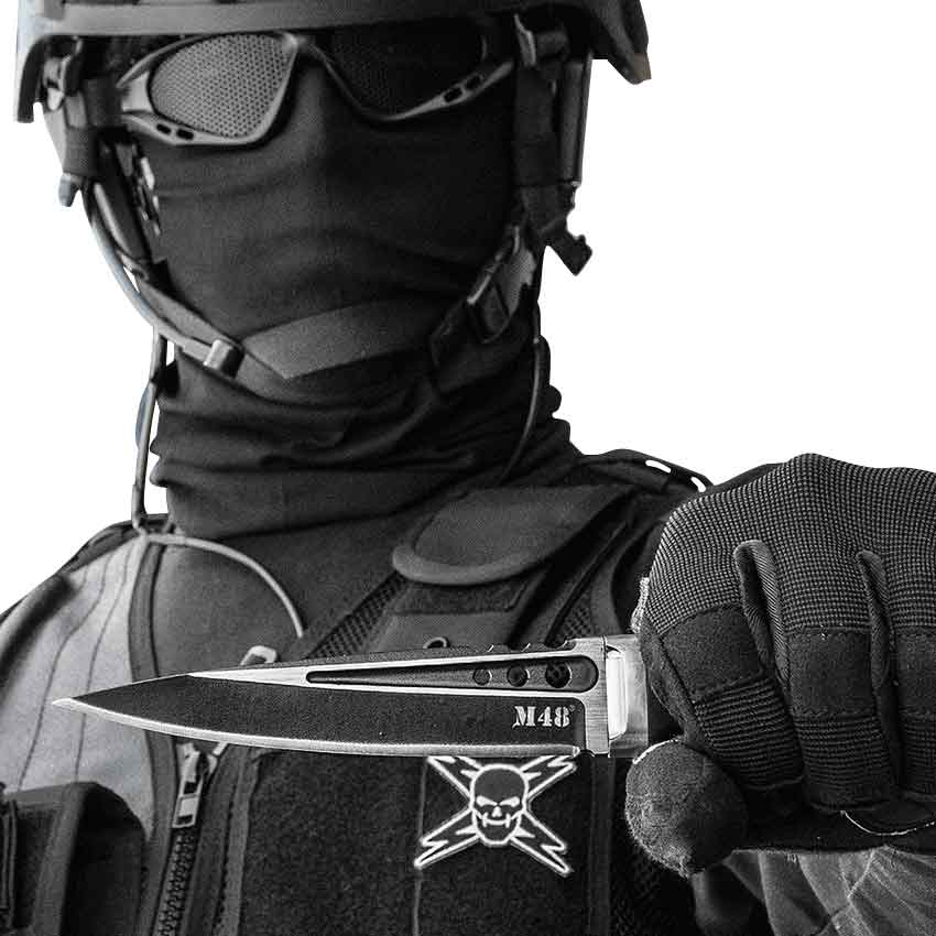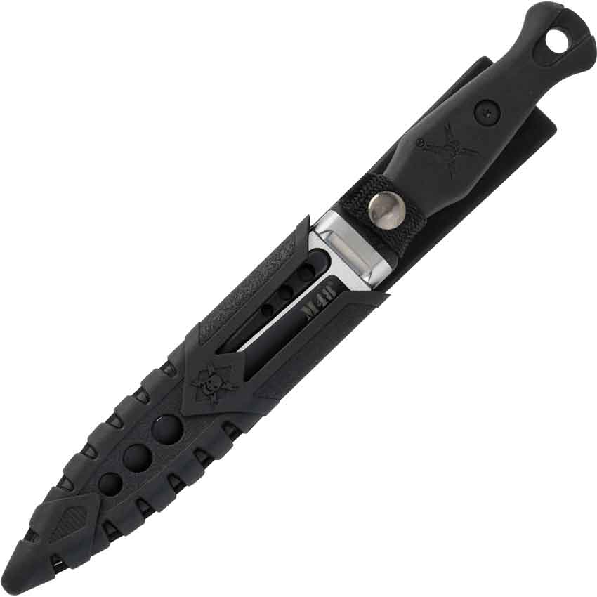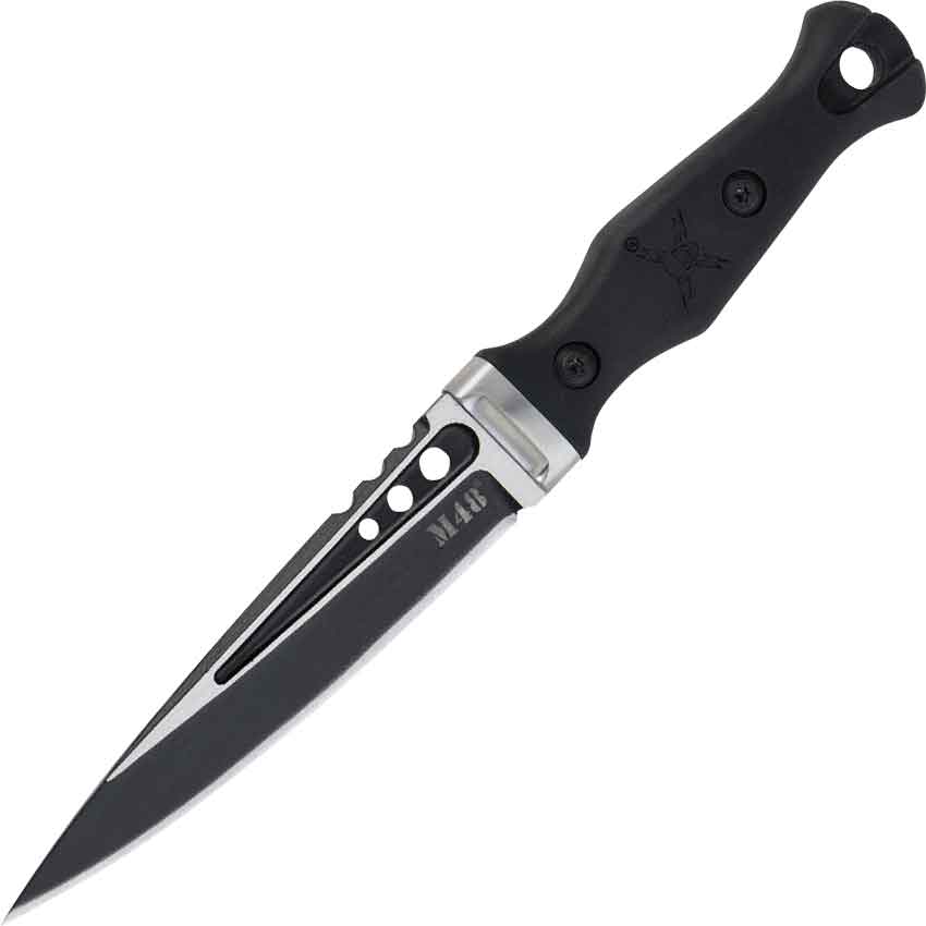 The M48 Highland Sgian takes the traditional Scottish dagger and gives it a sleek and modern look. This collectible and functional dagger really has a tactical feel to it. Protect your home and loved ones with this precise blade. Made from 2Cr13 cast stainless steel, the blade of this has been coated with black oxide and has a satin surface grind. The fullered blade has three through holes in it. A stainless steel guard gleams against the black handle. Displaying the traditional M48 logo, the knife handle is made from black TPR that is molded to fit comfortably in your hand. The handle also features a lanyard hole for added functionality. A TPU sheath with a polypropylene inner cover is included to house the blade and a double layered nylon strap keeps it firmly in place. This sheath can be strapped on your belt and you are ready to go. The M48 Highland Sgian is a perfect addition to any knife or tactical weapon collection.