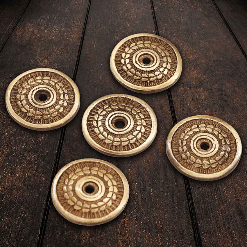This timeless Greco-Roman design adds a refined touch to any project. Perfect for LARP and historical reenactments, these washers complete most outfit ideas.
