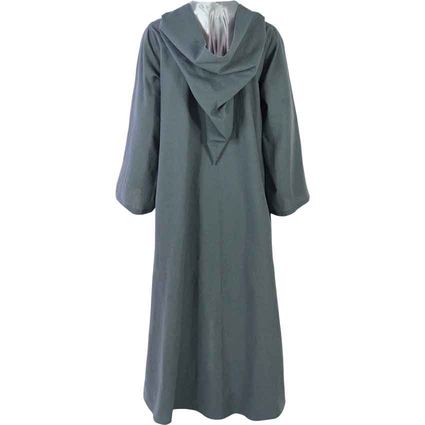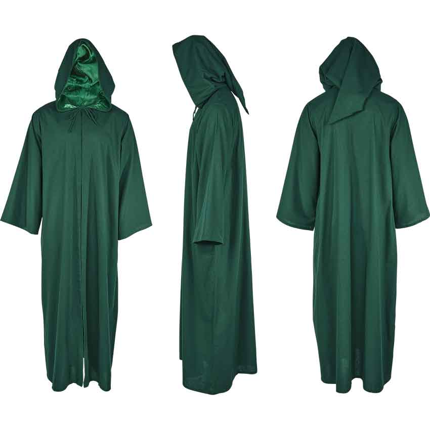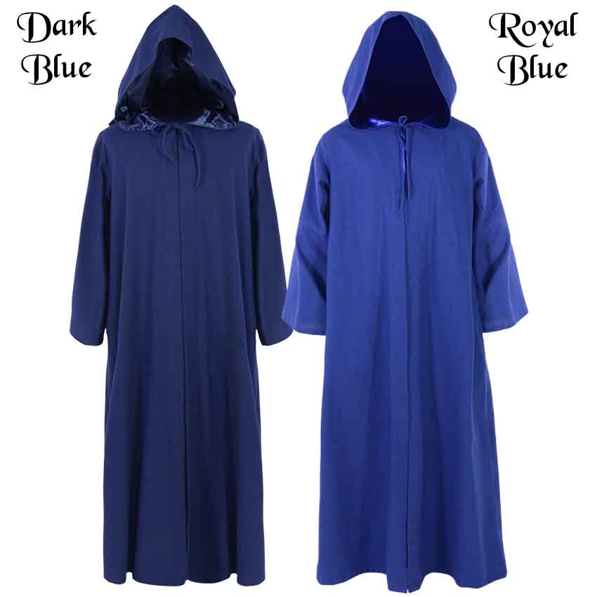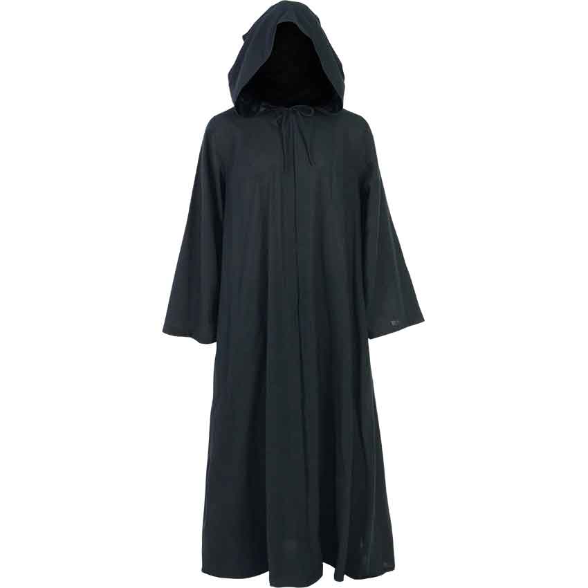 Excellent hybrid of robe and cloak. Exactly what I wanted and it even has pockets! I love how dark the black color is. The fabric is good quality and weighty and the stitching is robust. My only complaint is I wasn’t a fan of the silk lining on the hood because it slips around my head too much.