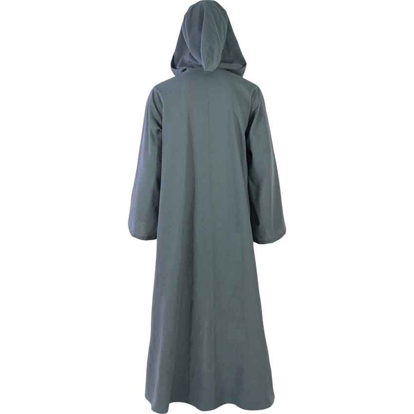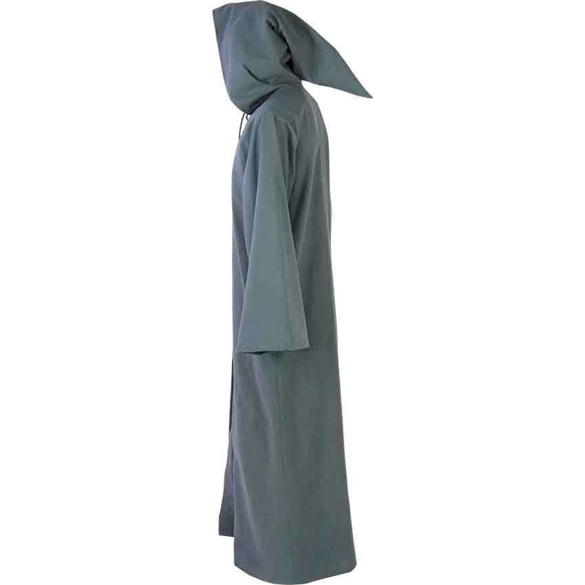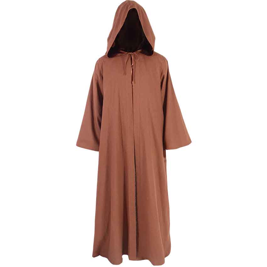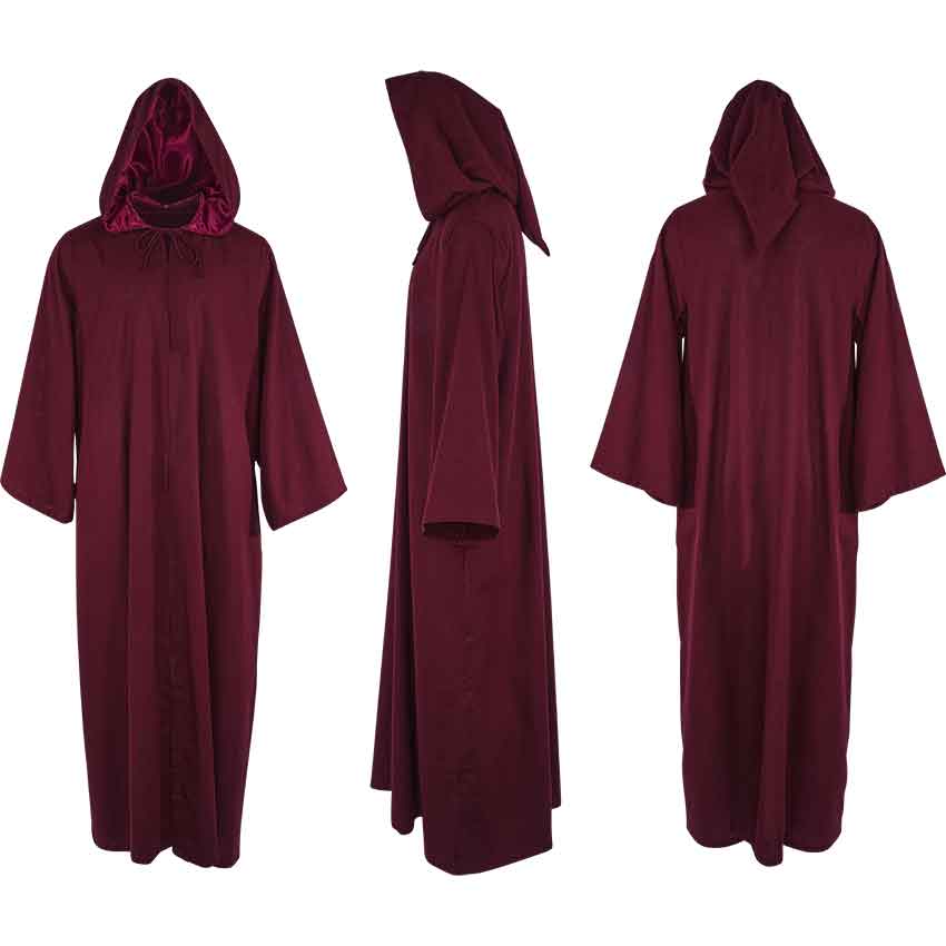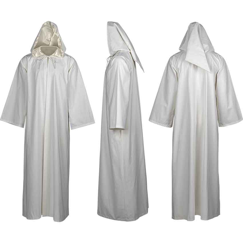 This sleek and attractive garment is a stunning combination of a robe and cloak. With features from both, the Medieval Ritual Robe/Cloak is simple yet beautiful item that surely marks an individual as having considerable and great personal power. Unlike a typical cloak that simply covers the shoulders, this garment features sleeves through which the arms can be placed, ensuring that the cloak-styled garment provides the maximum level of coverage when worn. It is handmade from 100% cotton, making it a medium-weight garment that is comfortable and easy to wear, yet still offers a decent level of protection from the elements. Additionally, the hood is lined to ensure that it is as comfortable to wear as the rest of the cloak is. The cloak is fastened by laces at the shoulder. There are pockets at the side seams. Please note that in the cloak pictured above with a black robe and a belt worn underneath. The robe and belt are not included with the actual cloak. The Medieval Ritual Robe/Cloak is an incredibly simple yet attractive item that is the perfect new addition to your wardrobe. It is fantastic for role playing occasions as well as for wearing to any sort of reenactment or renaissance fair!