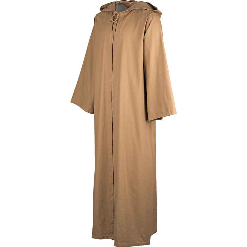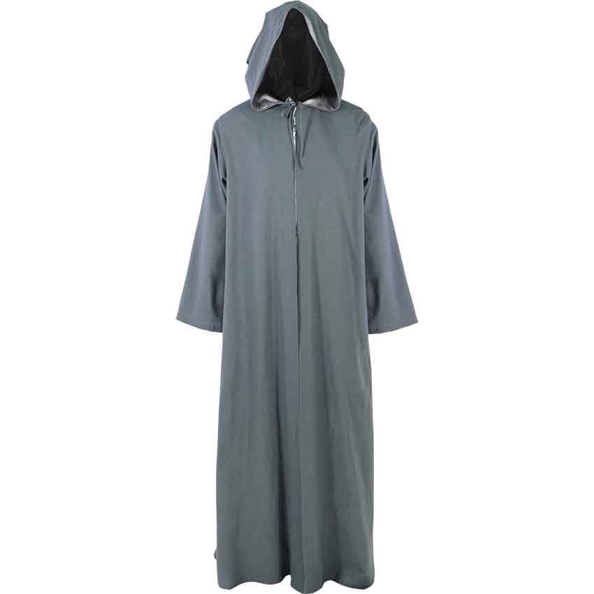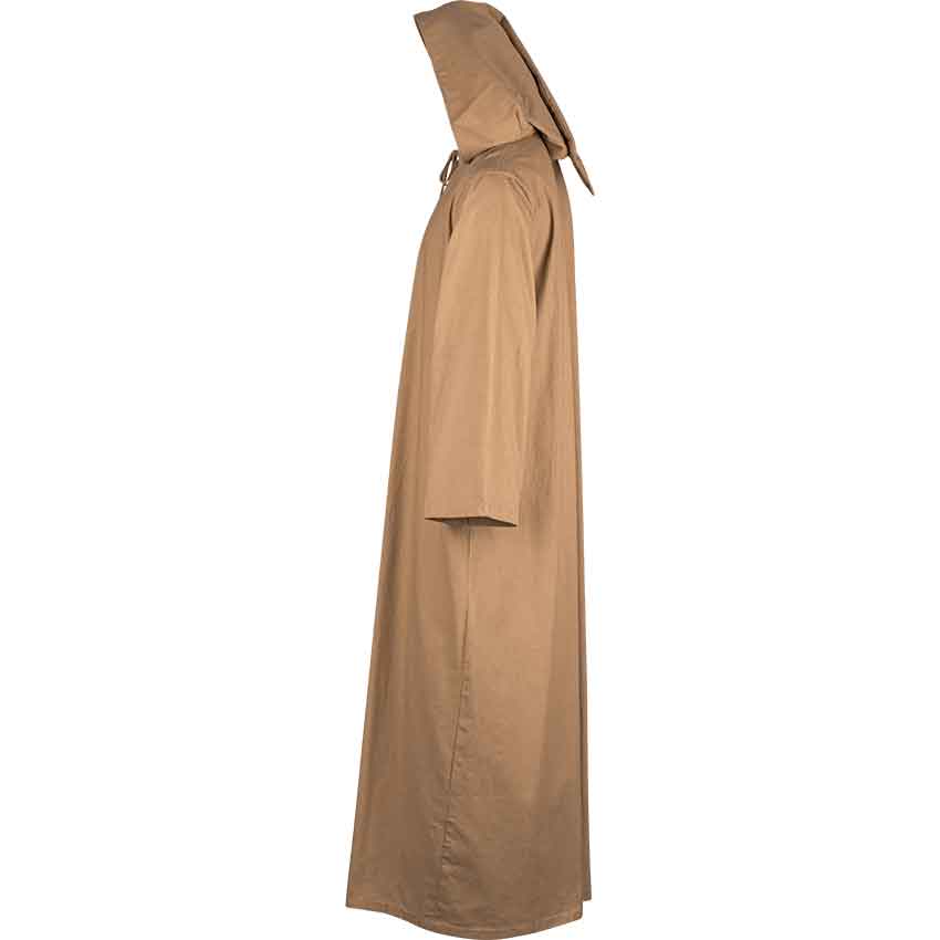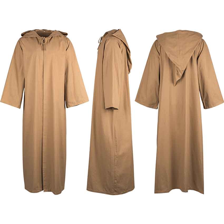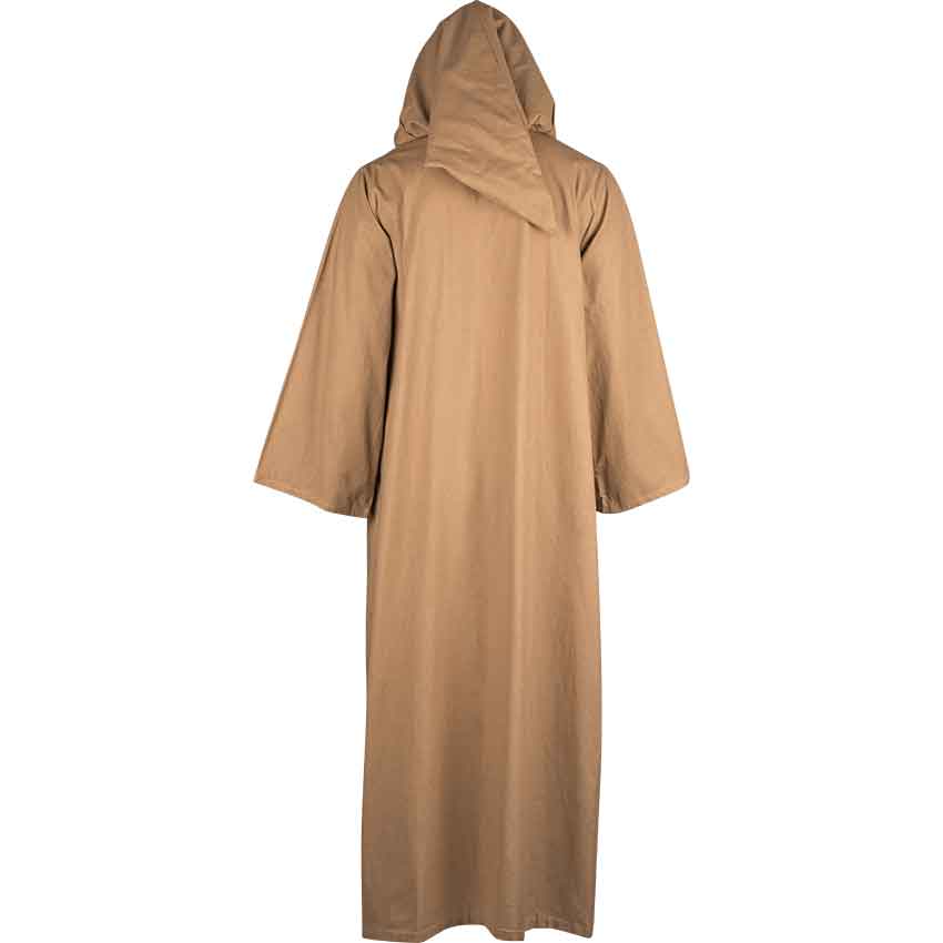 This sleek and attractive garment is a stunning combination of a robe and cloak. With features from both, the Medieval Ritual Robe/Cloak is simple yet beautiful item that surely marks an individual as having considerable and great personal power. Unlike a typical cloak that simply covers the shoulders, this garment features sleeves through which the arms can be placed, ensuring that the cloak-styled garment provides the maximum level of coverage when worn. It is handmade from 100% cotton, making it a medium-weight garment that is comfortable and easy to wear, yet still offers a decent level of protection from the elements. Additionally, the hood is lined to ensure that it is as comfortable to wear as the rest of the cloak is. The cloak is fastened by laces at the shoulder. There are pockets at the side seams. Please note that in the cloak pictured above with a black robe and a belt worn underneath. The robe and belt are not included with the actual cloak. The Medieval Ritual Robe/Cloak is an incredibly simple yet attractive item that is the perfect new addition to your wardrobe. It is fantastic for role playing occasions as well as for wearing to any sort of reenactment or renaissance fair!