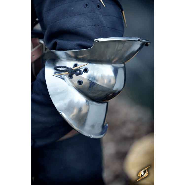 Your commander calls you to draw your sword and enter into combat. Wearing the Polished Steel Milanese Complete Armor, you stride forth confidently. Made from 19 gauge mild steel, this armour set comes in three sizes. When choosing your size, your friendly neighborhood armor smith recommends that you factor in the bulk of a gambeson or interior padding, sold separately. The set of armour includes a breastplate, pauldrons, faulds and tassets, as well as couters.