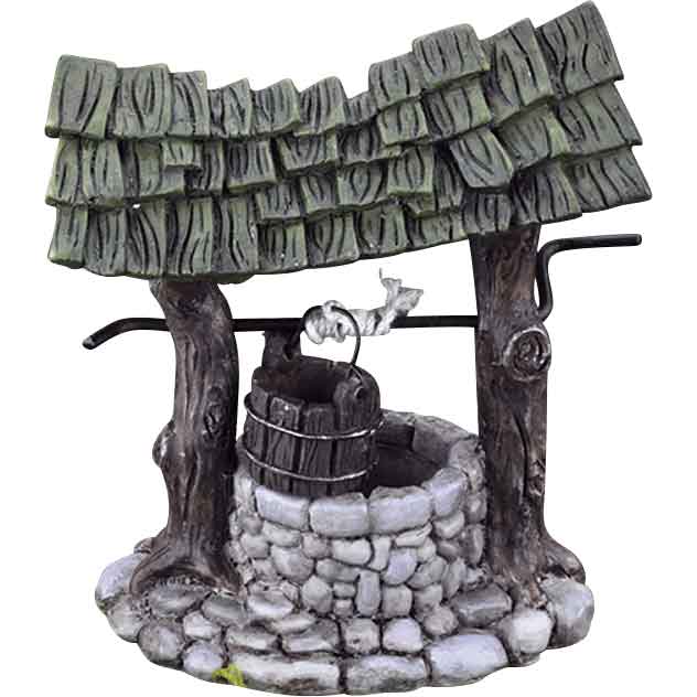 As creatures of magic, fairies like to make wishes. There is no place better than a wishing well like the Mini Wishing Well Statue. Made from cold cast resin, this hand-painted figurine depicts a small well. The well has a stone base and sides. Two trunk-like posts sit on each side of the well. A wire pole runs between them. It has a white cord attached to a brown wooden bucket. The bucket is moveable. At the top of the posts, there is a green roof. The A-line roof has wood-like shingles. Also, the roof angles downward in the middle. You can add this wishing well statue to any mini village scene, landscape display, or tiny fairy garden. It also makes a cute addition to your home decor.