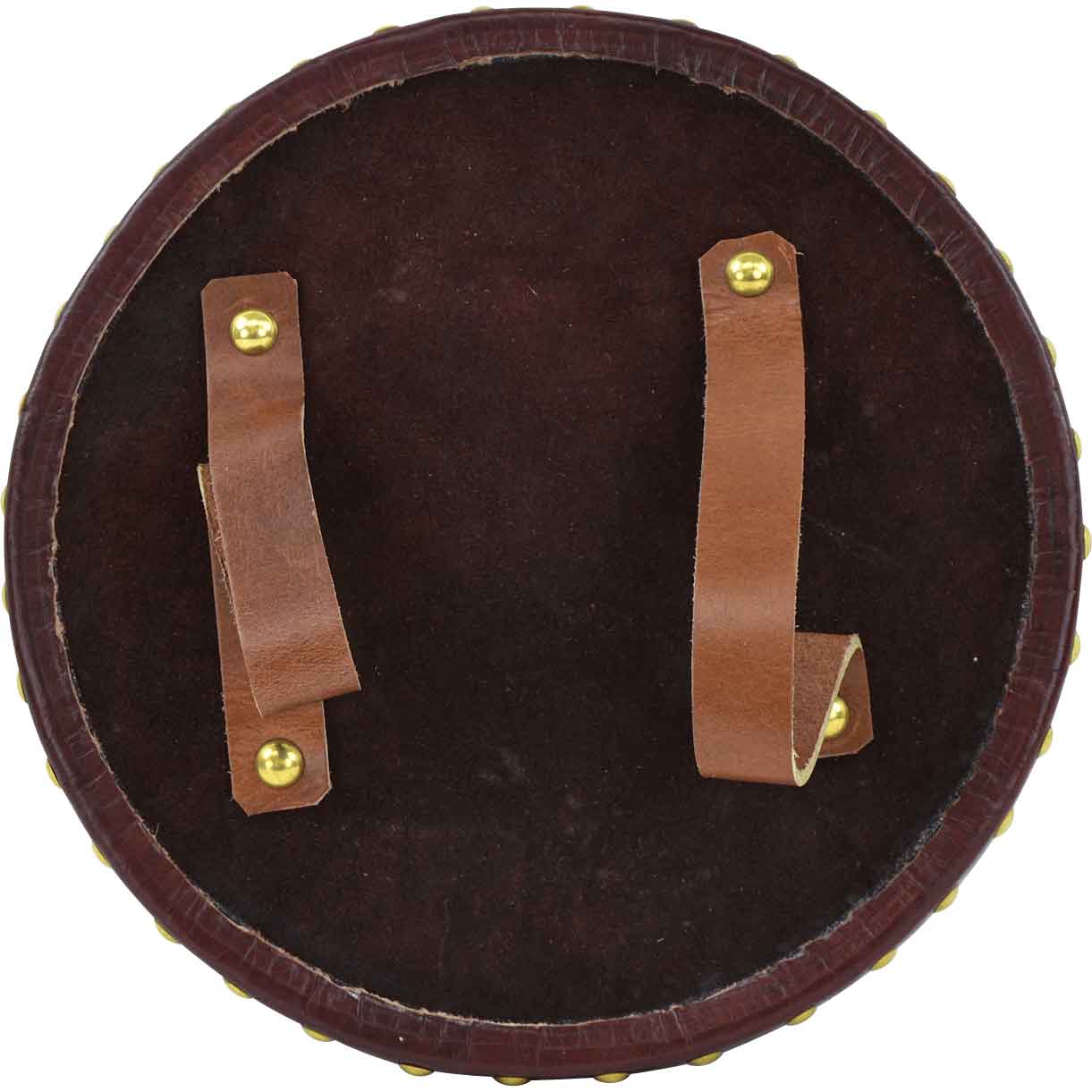 For those history buffs and cultural enthusiasts who want to celebrate some Scottish Highland style but have limited space to work with, this Miniature Scottish Targe is a gift from above, one that perfectly recreates the Highland shield in miniature. Traditionally, the targe was made from wood and wrapped in leather, and this miniature does not diverge from that tradition. Small in size yet great in detail, this little collectible is a true gem, one that features a small brass boss at the center, which is flanked by concentric circles, in classic Highland targe design. Brass rivets and studs form the basis of the design, with four small secondary brass bosses adorning the outer edges of the shield. Embossed into the leather, around these subsidiary bosses are elegant Celtic detailing. Smaller size makes this Miniature Scottish Targe easier to handle as a display item, ensuring that even an enthusiast with the smallest amount of space can celebrate some Scottish heritage and style, by adding this small shield to their collection.