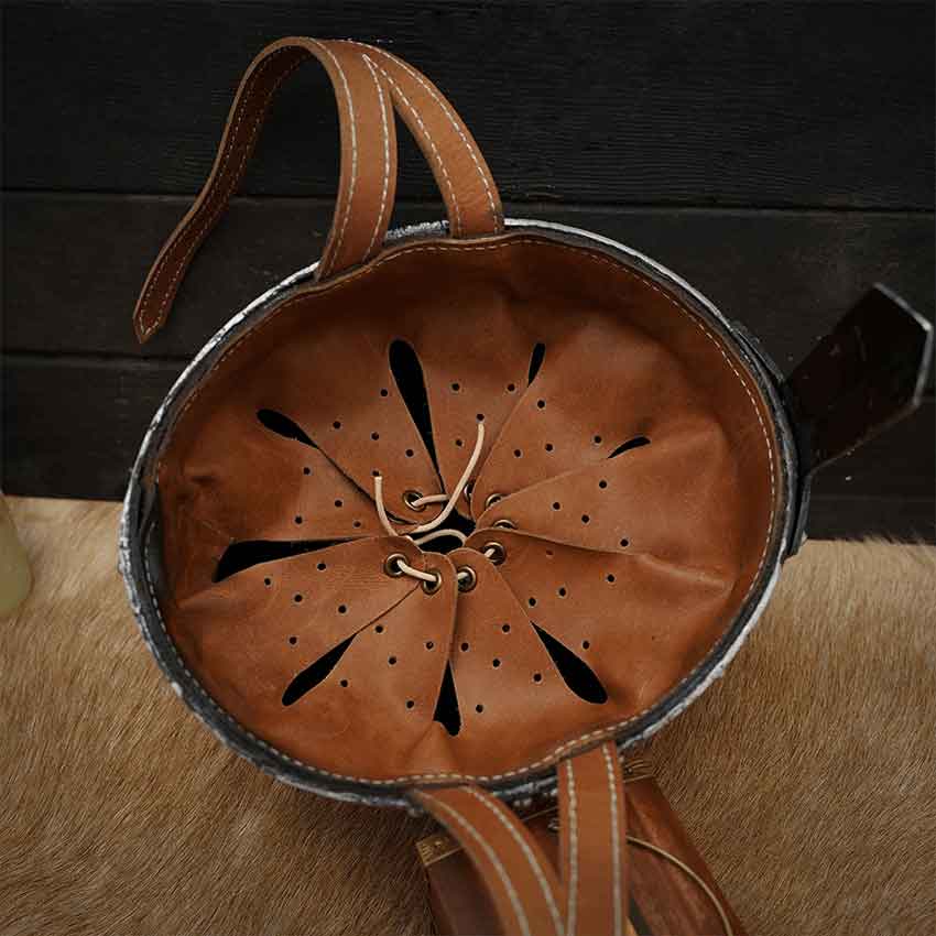 - Includes riveted reinforcing strips across the top and around the bottom rim for added strength.