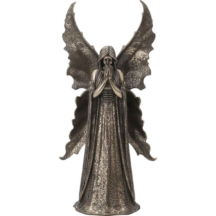 The Only Love Remains by Anne Stokes Statue is a lovely piece of fantasy artwork to put on display in any home decor or office space. Made from cold cast bronze, this hand-painted statue depicts artwork from the popular artist Anne Stokes. It displays a fairy with butterfly wings. She holds a flower to her face. The fairy wears a long flowing dress with an off-the-shoulder neckline. Intricate floral detailing adorns both the fairys dress and her wings. This beautiful statue also makes a wonderful gift for any fan of fantasy or fairies.