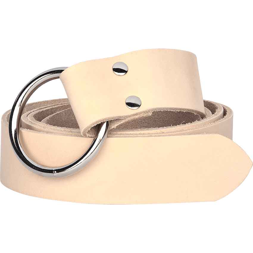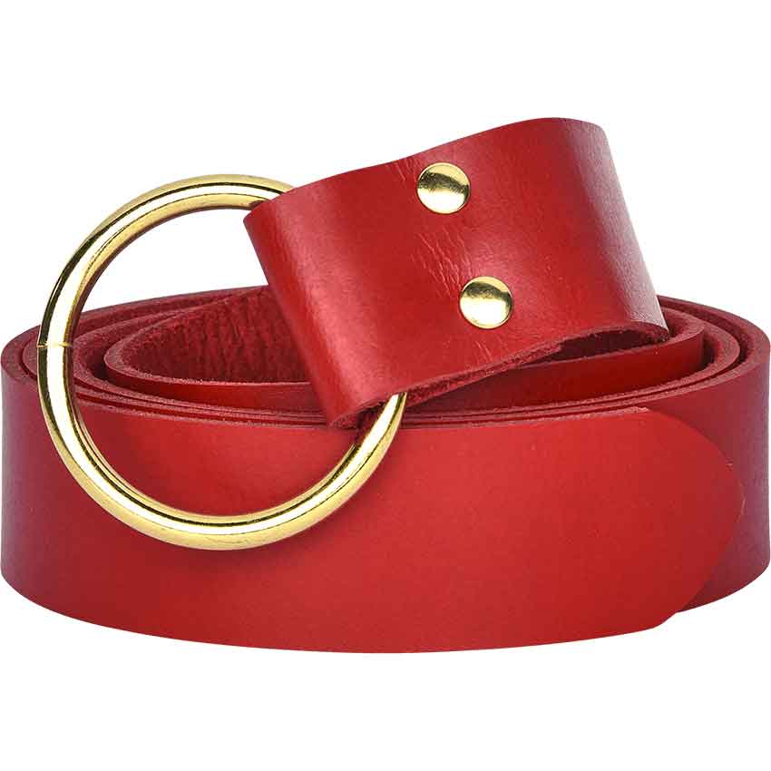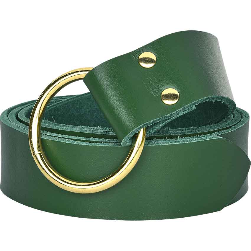 This basic Medieval Ring Belt is a necessity for any medieval or renaissance outfit. Made of 7/8 oz. sturdy belt leather, it is 1.5 inches wide and comes in two different lengths, 63 inches or 71 inches. Available in a wide varieties of colors, including black, brown, red, green, blue and natural. You also have your choice of silver (steel) or gold (brass) hardware. If you are looking for a simple, functional belt at an excellent price, this is it!