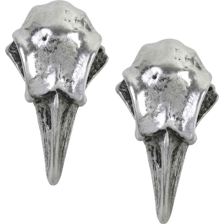 German for Ravens Skull, the Rabeschadel Earrings display a sculpted pewter bird skull design. Ravens are famous in myth for their prophetic powers, acting as the messengers of Odin and capable of telling the future. In the traditions of the Middle Ages, the body of the martyred St. Vincent was protected from desecration by a vigilant raven guard. The raven skull earrings display excellent detail in the fine English pewter, giving the skulls a realistic look. These stud earrings feature surgical steel posts. The pewter skull earrings are sold in a matching pair, and they do require pierced ears to wear. Be sure to check out our other raven jewelry like the complementary Rabeschadel Choker (AG-P736) to fully accessorize your dark look.