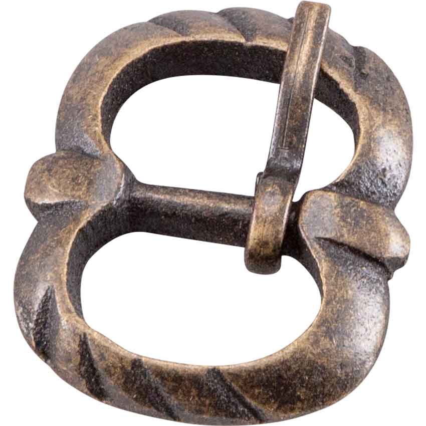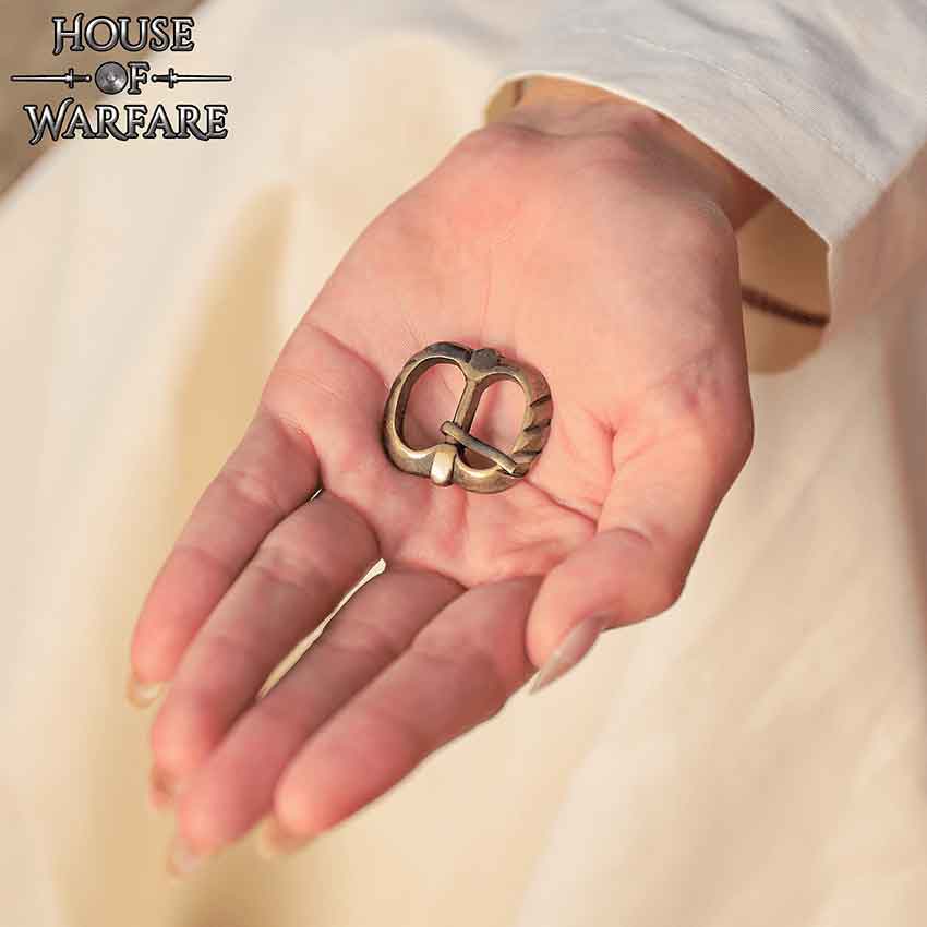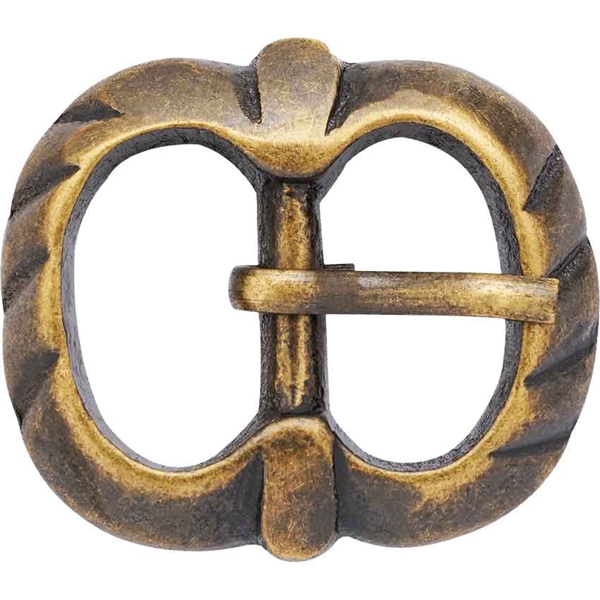Many cosplayers, reenactors, and more need a buckle for their projects. The Ridged Center Loop Belt Buckle is ideal for a variety of design ventures. Made of brass, the buckle has an antiqued, rough finish. The belt buckle is double sided with a center section for looping a strap, not included. The outer edges feature curved ridges with slight notches completing the ridges. A pin fastens the buckle. Add this brass buckle to a belt, purse, or other accessory. It works great for a modern or historical outfit.