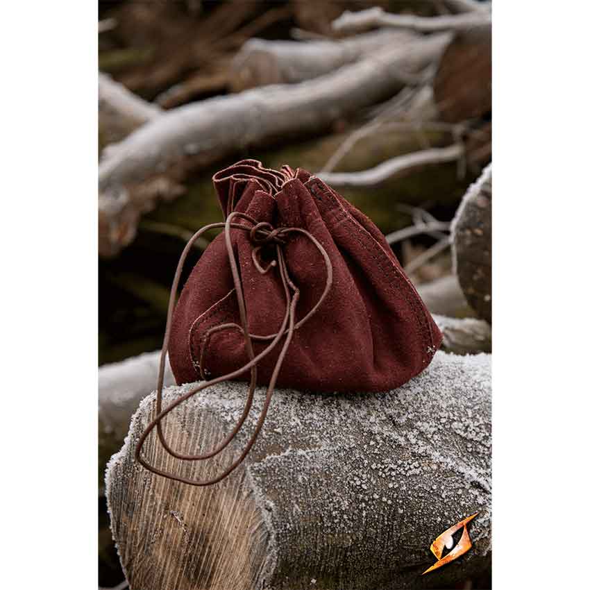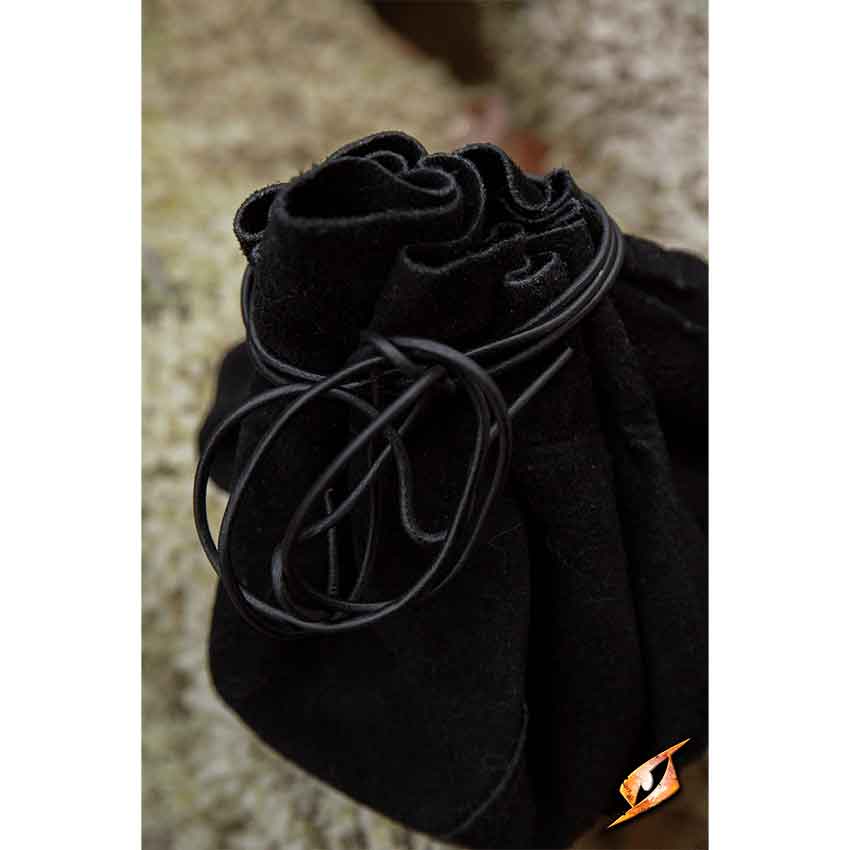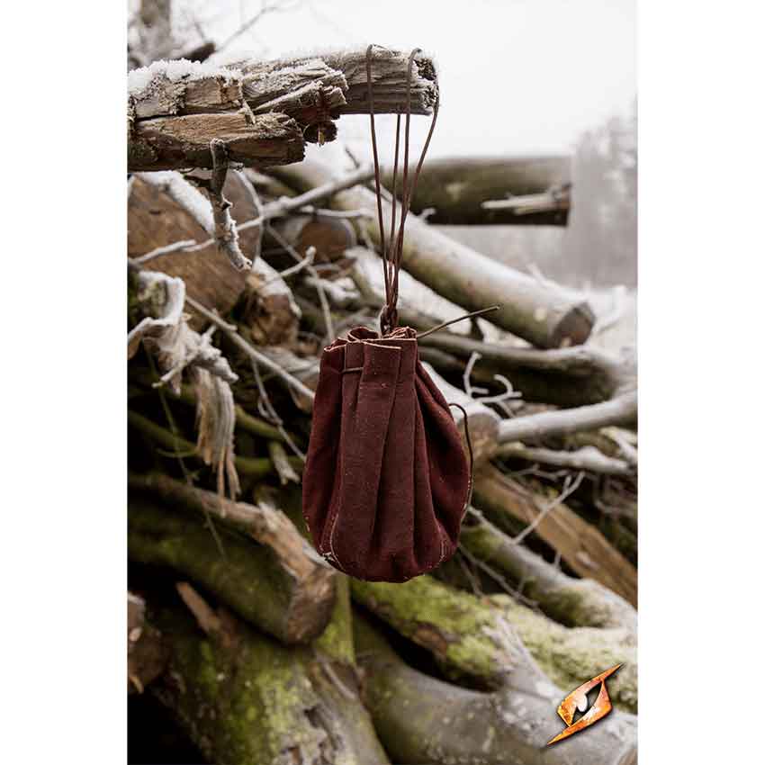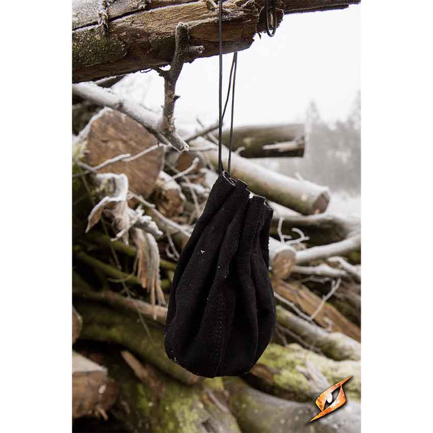 This simple suede pouch is large enough to hold all your essential modern day items (like keys, money, credit cards, cell phones, etc.) that you need to bring to events and fairs, but would rather hide to keep the period atmosphere. The pouch comes with long leather laces to tie the pouch closed and then can be used as a handle or tied on to your belt for carrying. When you are out and about at the fair, you will want to take shelter from any rain so the coloring from the pouch does not rub off on any of your lighter colored clothing.